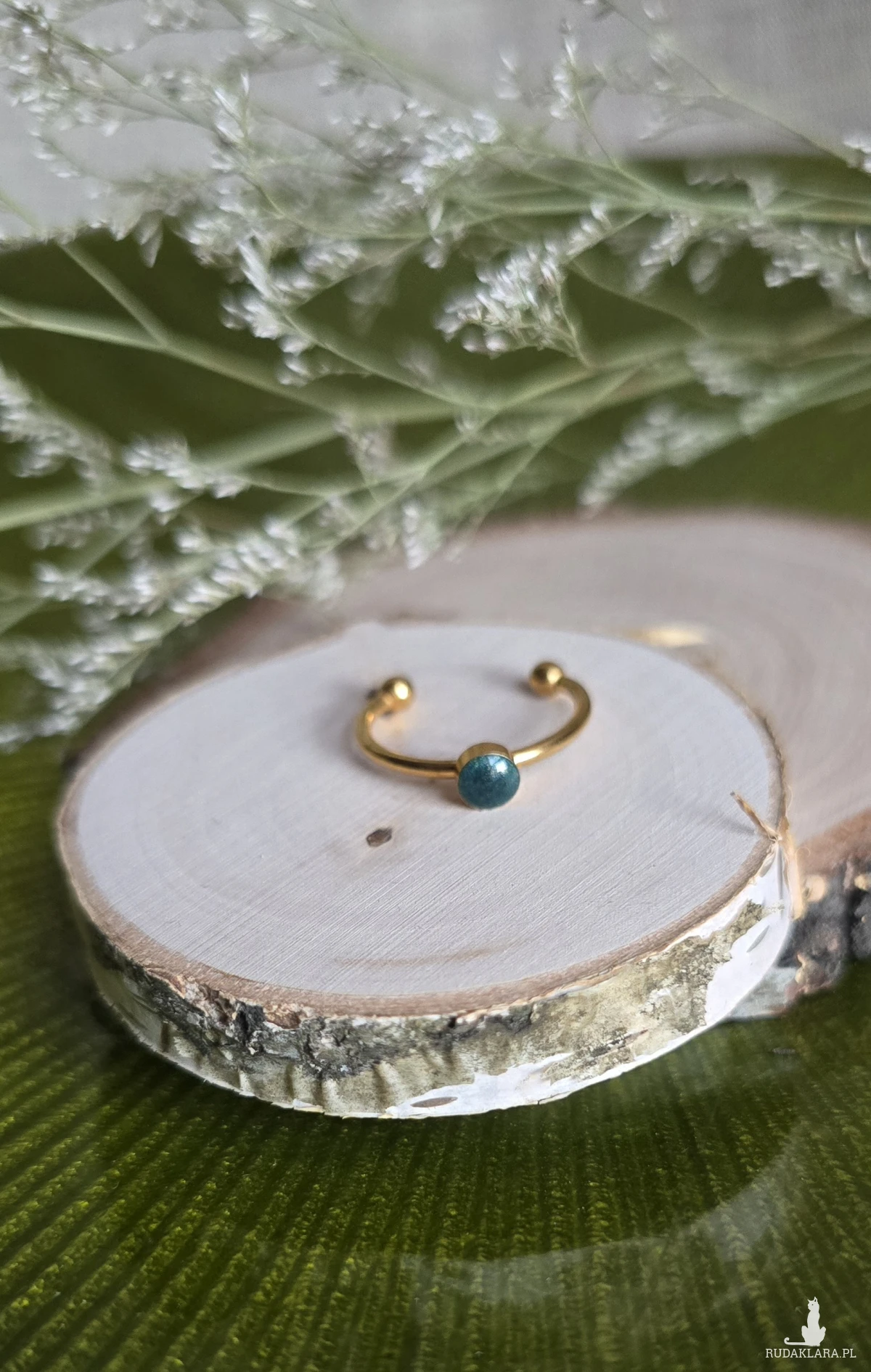 Oferuję Państwu unikalną biżuterię. Pierścionek jest wykonany z suszonych kwiatów i żywicy epoksydowej. Biżuteria jest wspaniałym i oryginalnym prezentem na lata.