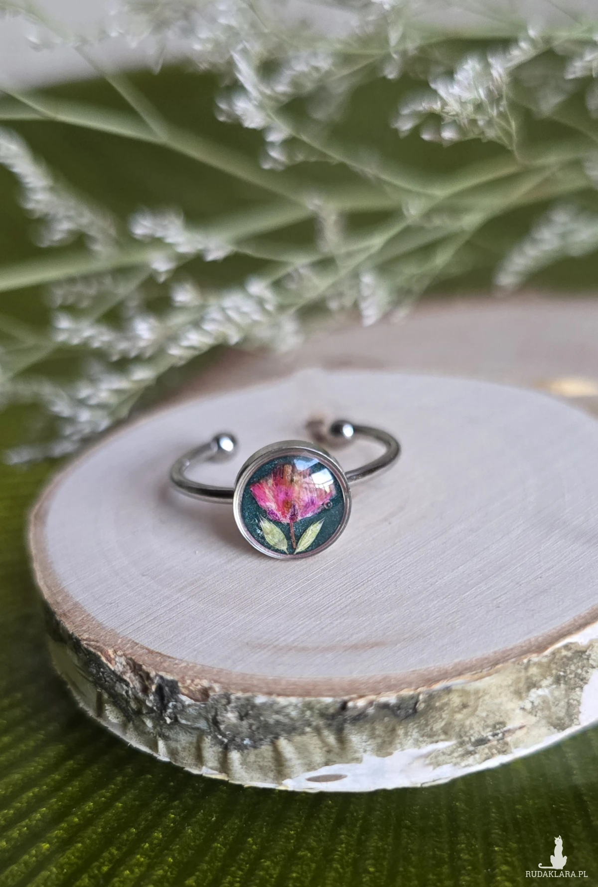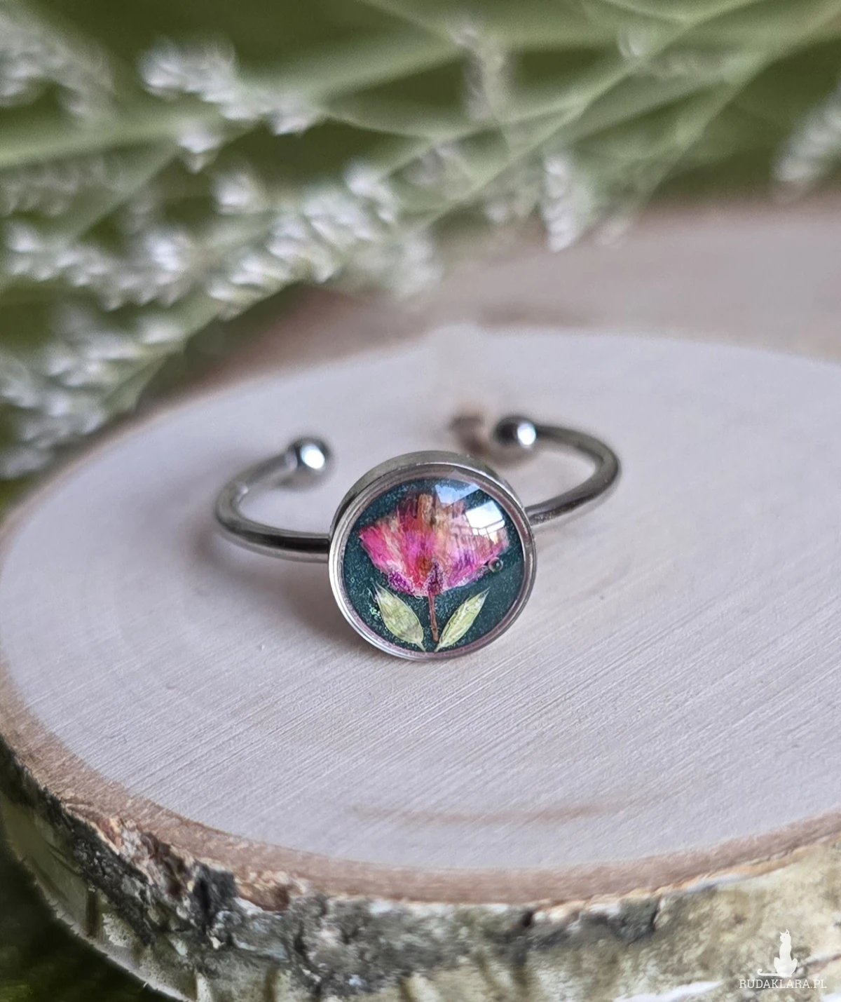 Oferuję Państwu unikalną biżuterię. Pierścionek jest wykonany z żywicy epoksydowej. Biżuteria jest wspaniałym i oryginalnym prezentem na lata.