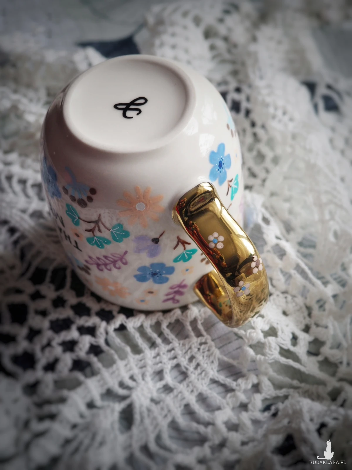 Wzór wykonany został przy użyciu nietoksycznych farb do porcelany, jest wodoodporny - naczynie może być myte ręcznie, bez użycia ostrych narzędzi.