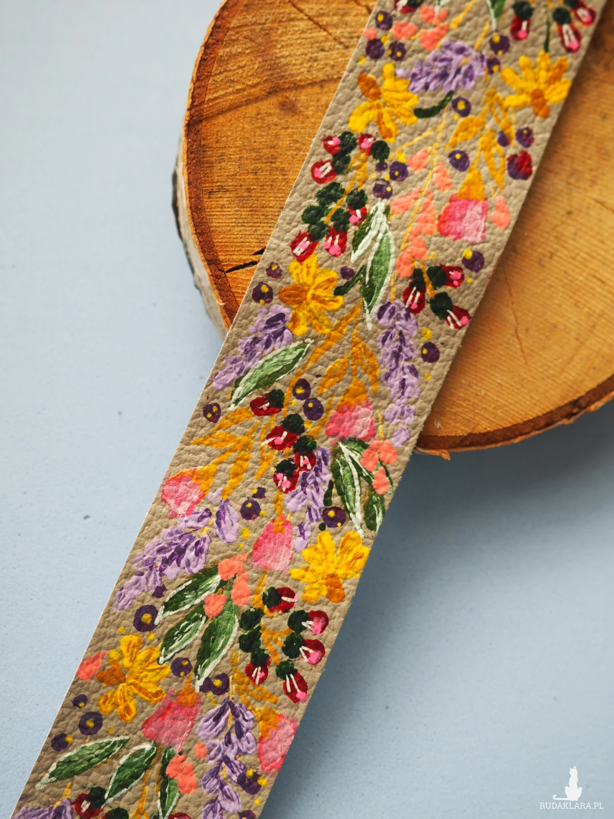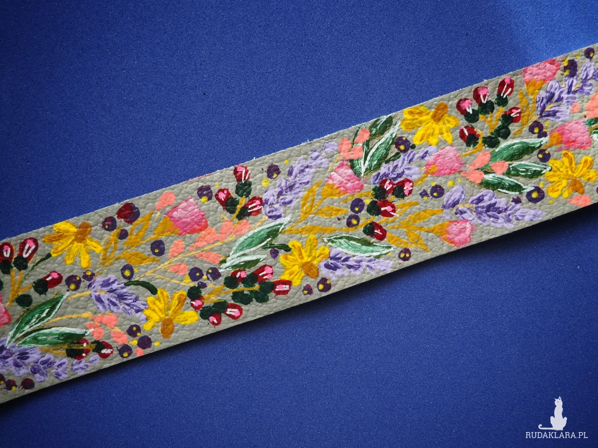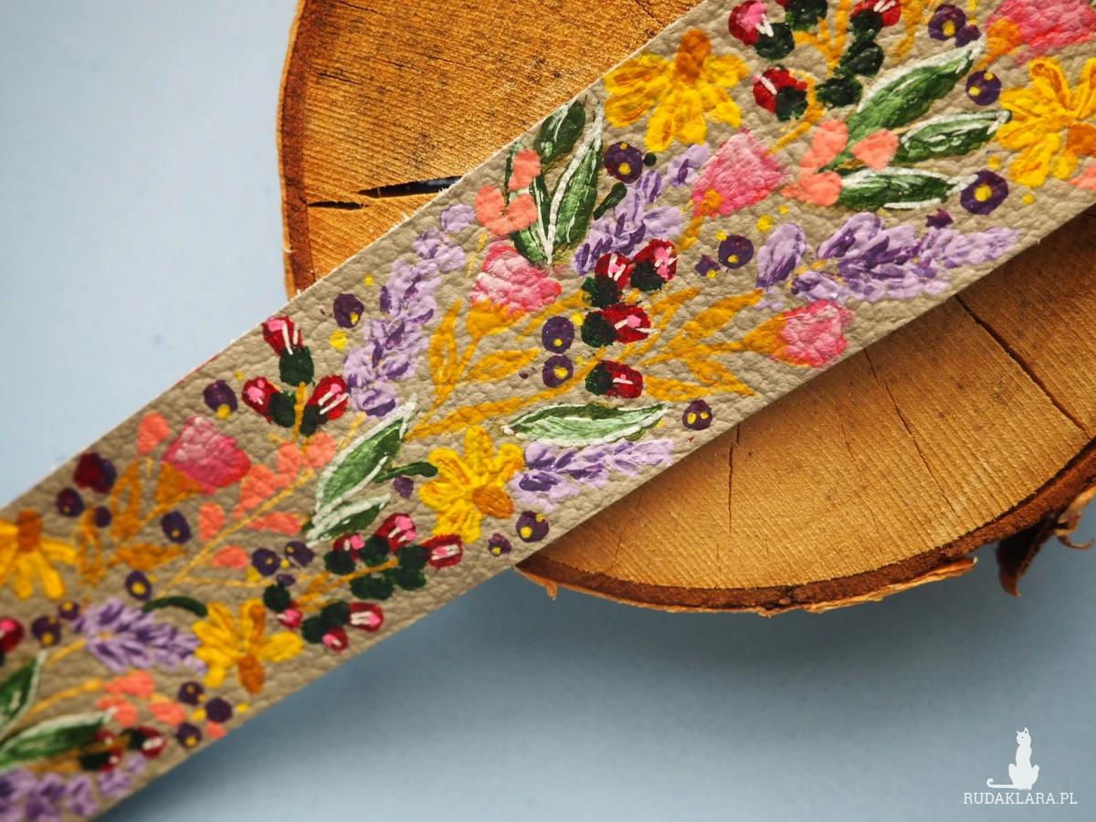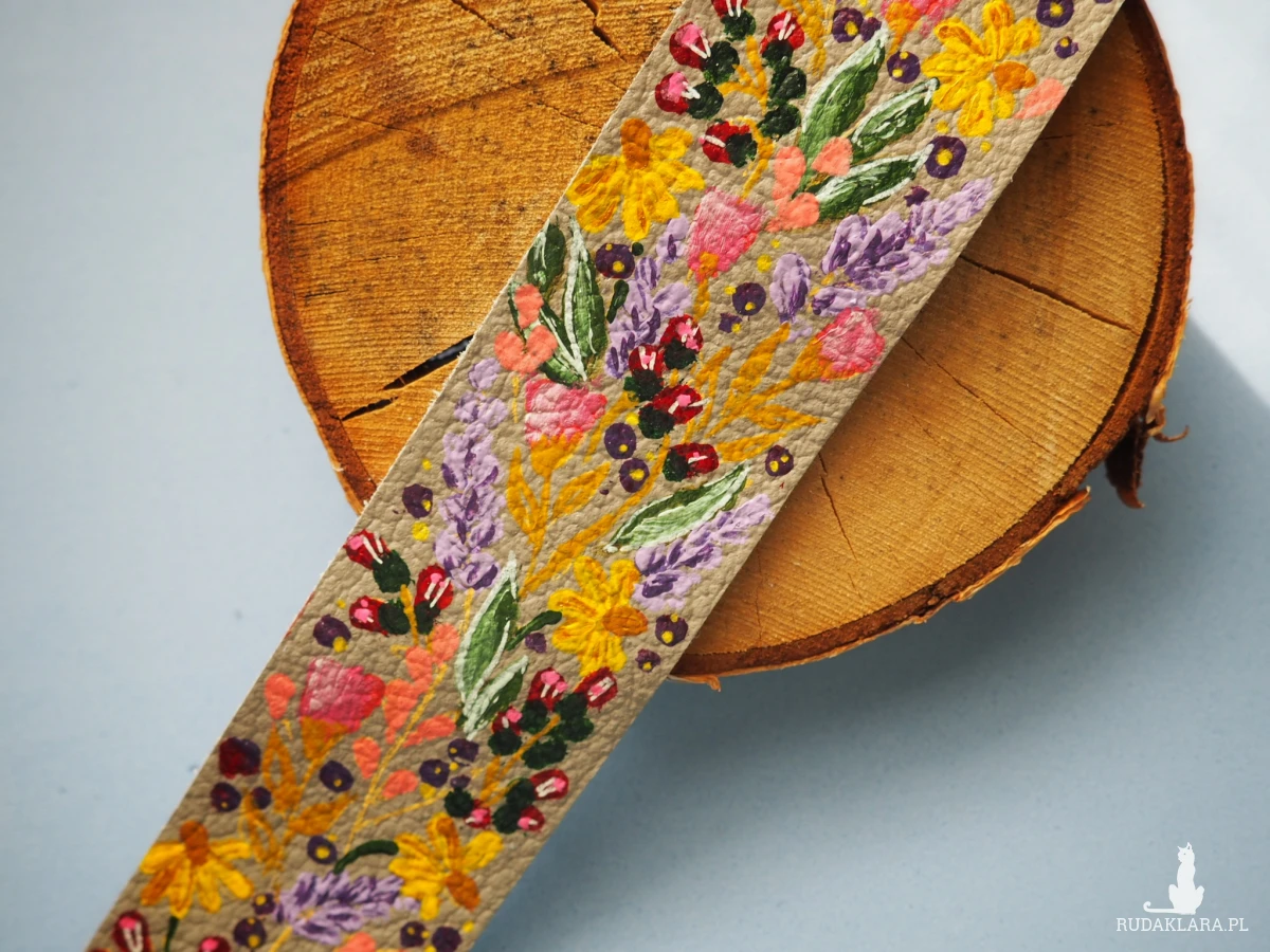 Odkryj wyjątkową skórzaną bransoletkę ręcznie malowaną w kwiaty, stworzoną z naturalnej skóry pochodzącej z recyklingu. To nie tylko modny dodatek, ale również świadomy wybór - każda sztuka powstaje z materiałów odzyskanych, dzięki czemu ścinki skóry używanej w tapicerstwie zyskują drugie życie w artystycznej odsłonie.