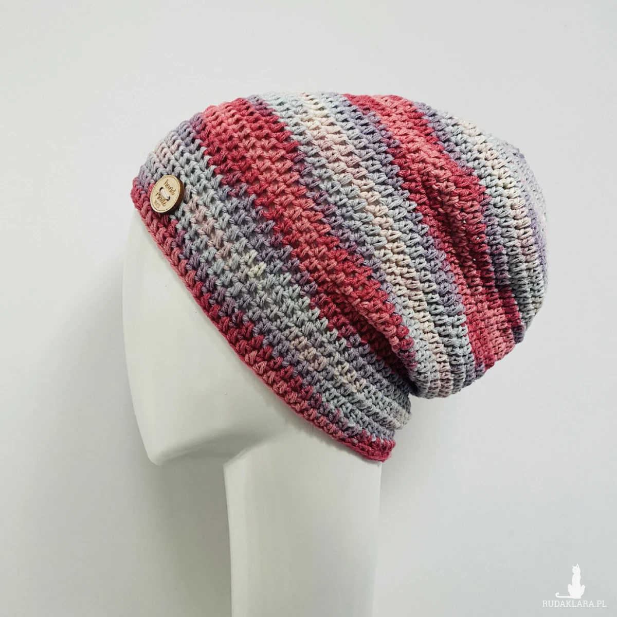 Czapkę wykonałam z wysokiej jakości włóczki bawełniano-akrylowej, która zapewnia wygodę noszenia przez cały dzień.