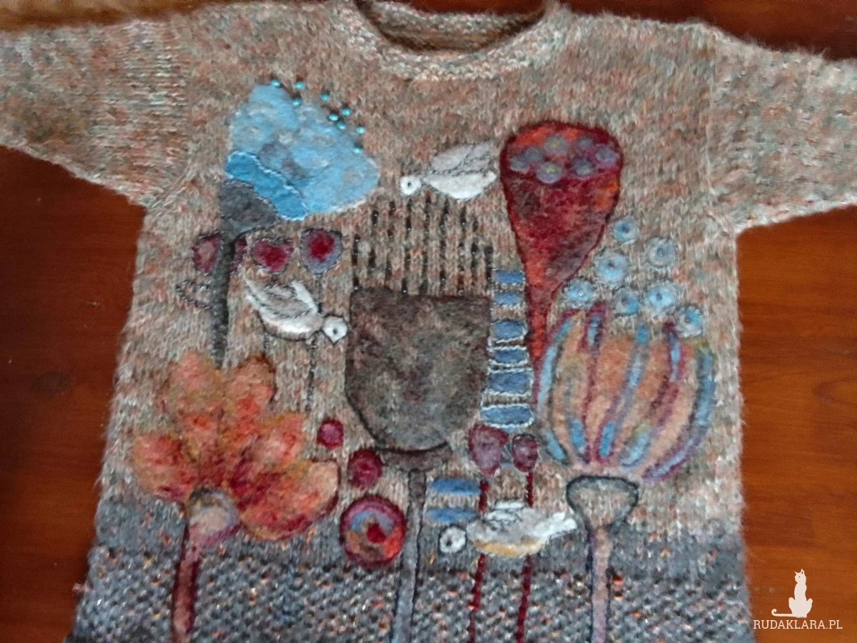 Wełniany sweter z malowniczym filcowaniem