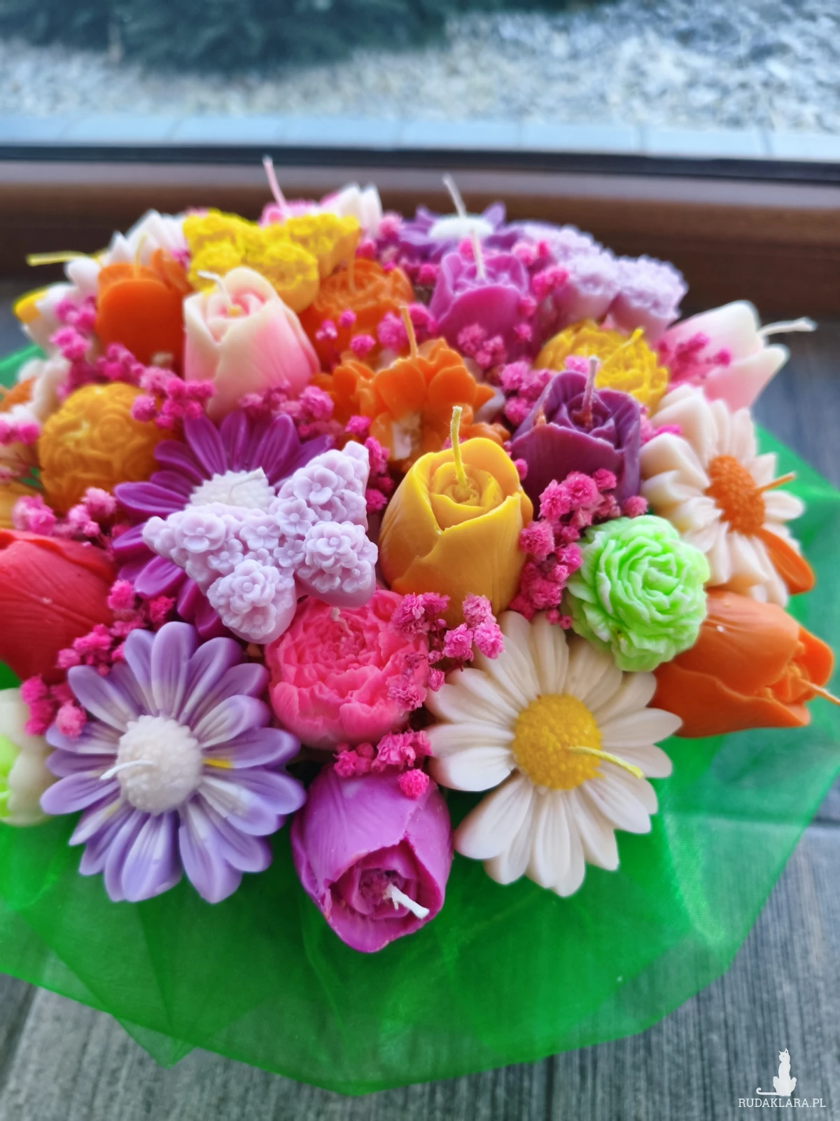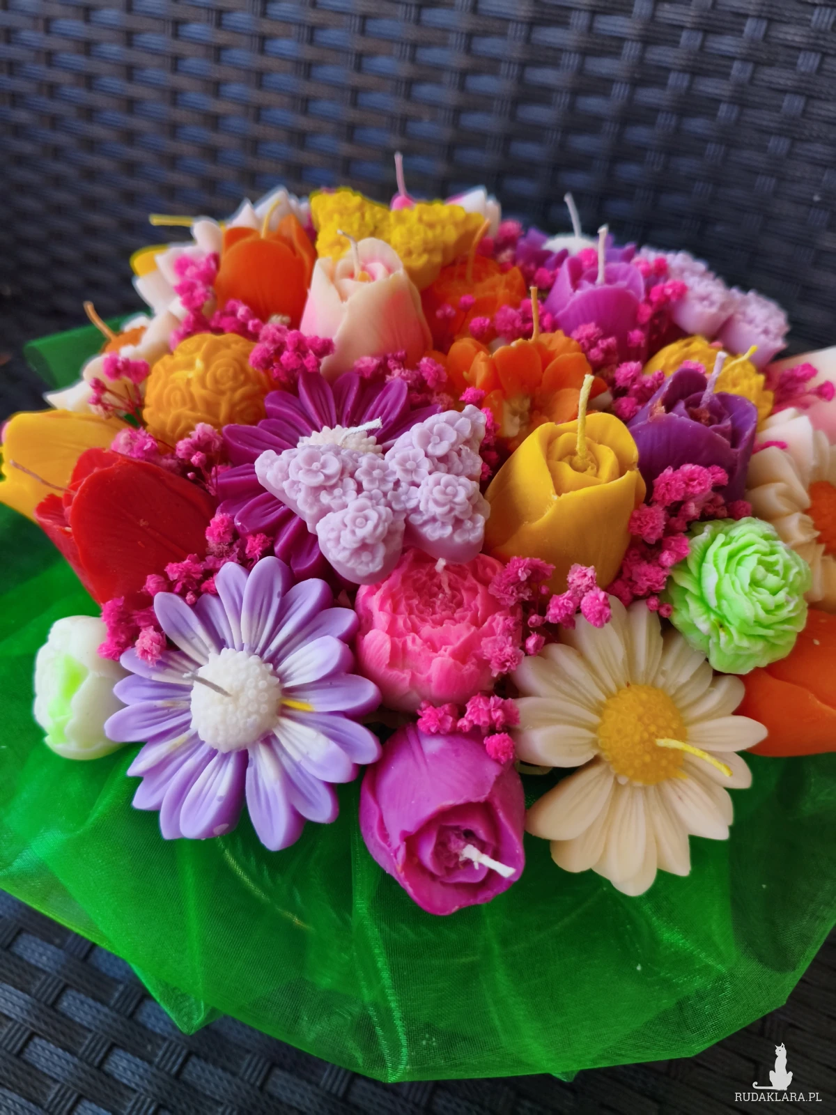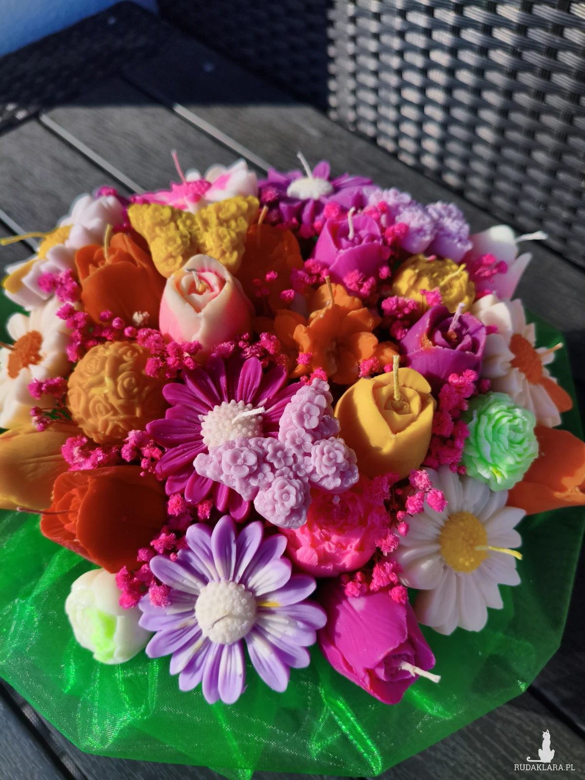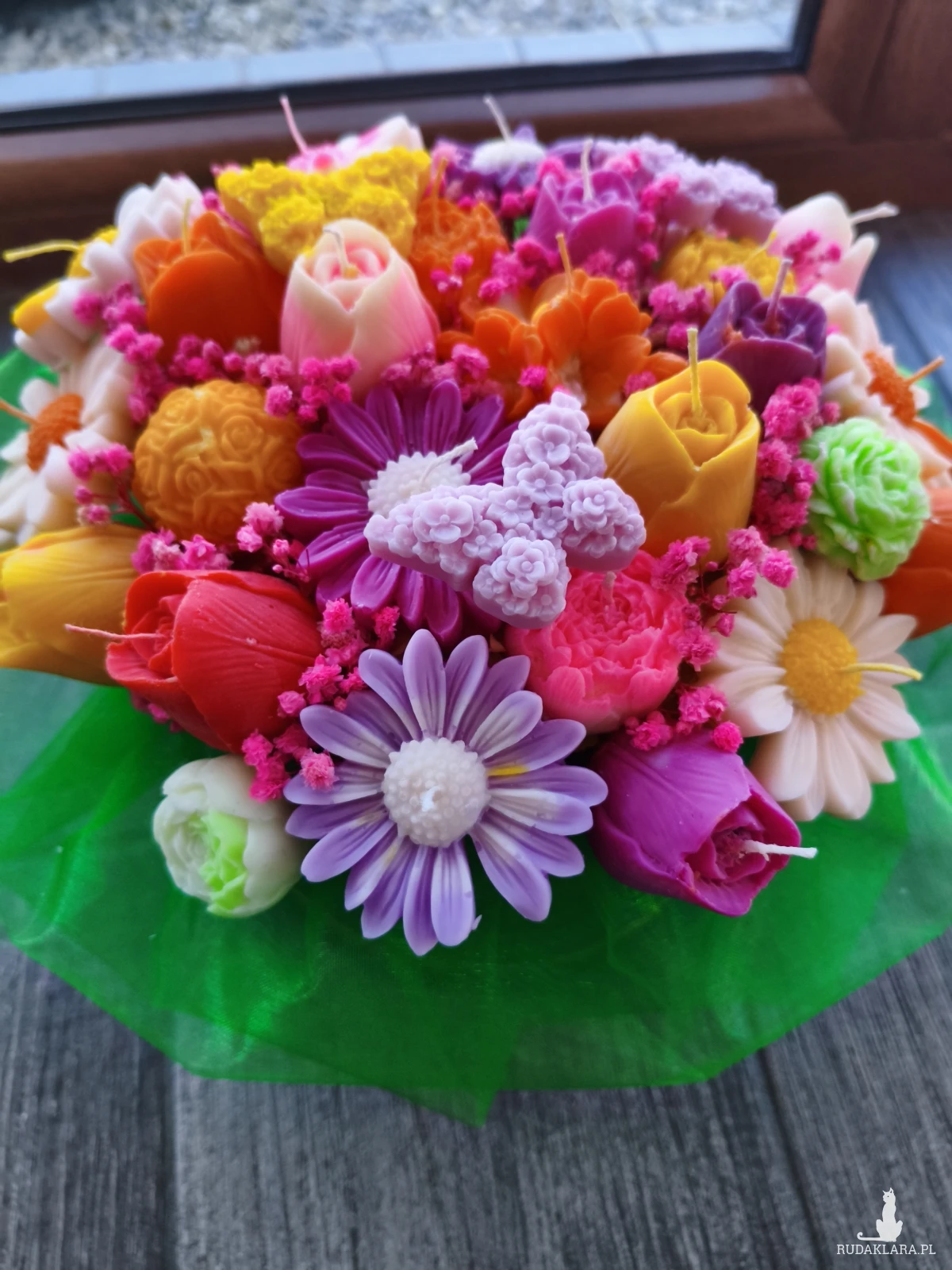 Flower box wysyłam zapakowany w celofan, wstążkę i bukiecik ze suszu oraz instrukcją palenia świec - gotowy do wręczenia jako prezent.