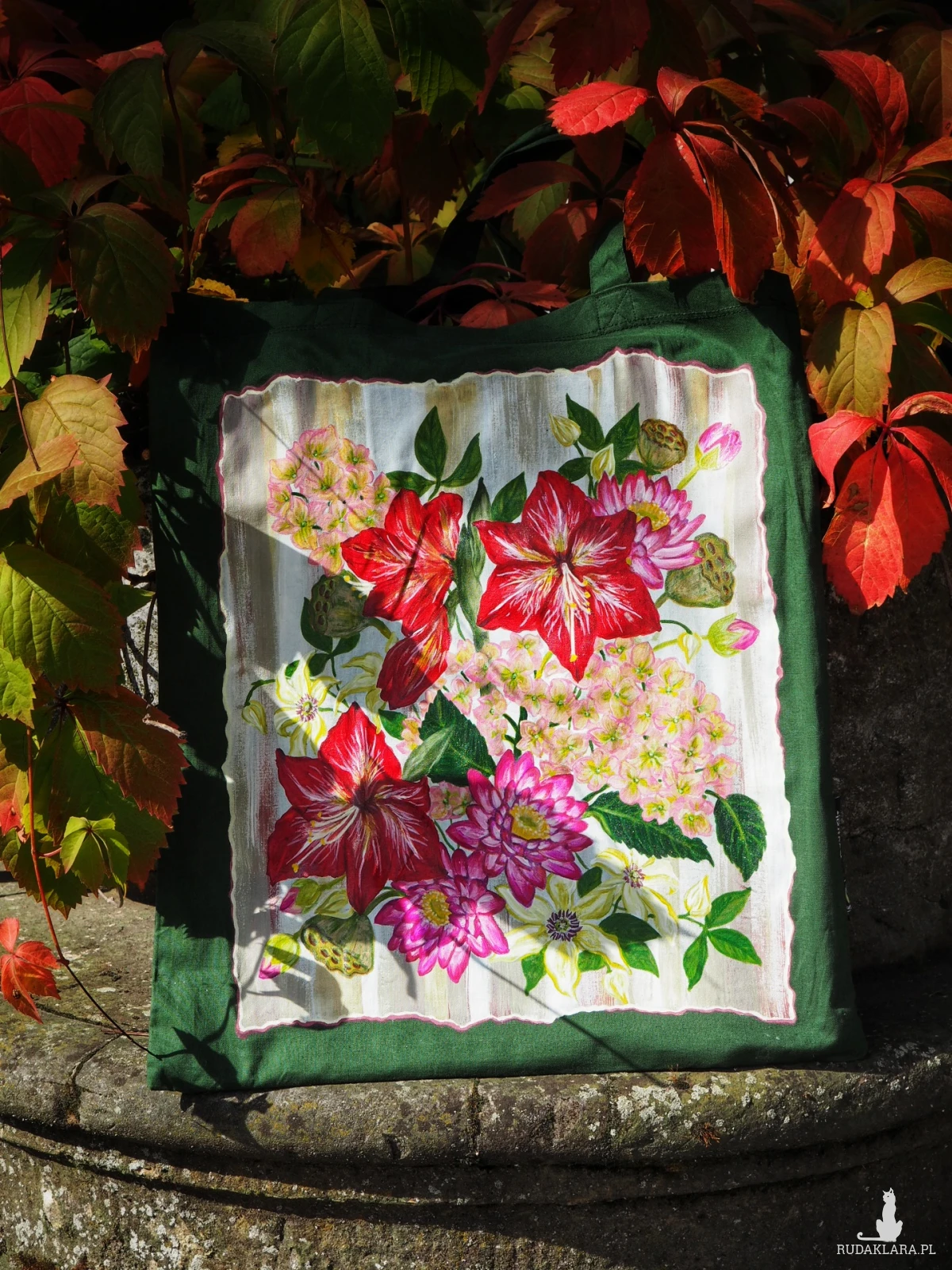 Wzór wykonany został wysokiej jakości farbami do tkanin, torbę można prać po lewej stronie w trybie prania ręcznego, w temperaturze 30 stopni, z detergentem bez wybielaczy, bez wirowania. Nie czyścić chemicznie. Nie prasować bezpośrednio na grafice (można prasować po lewej stronie).
