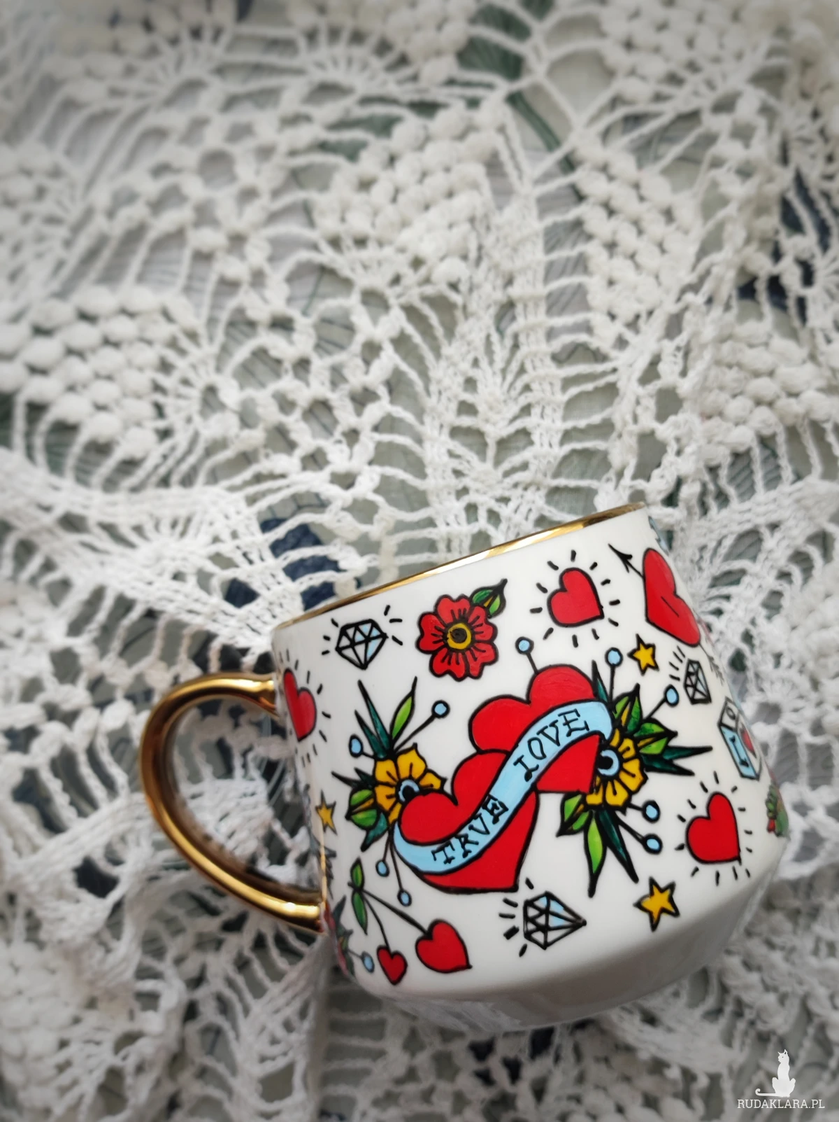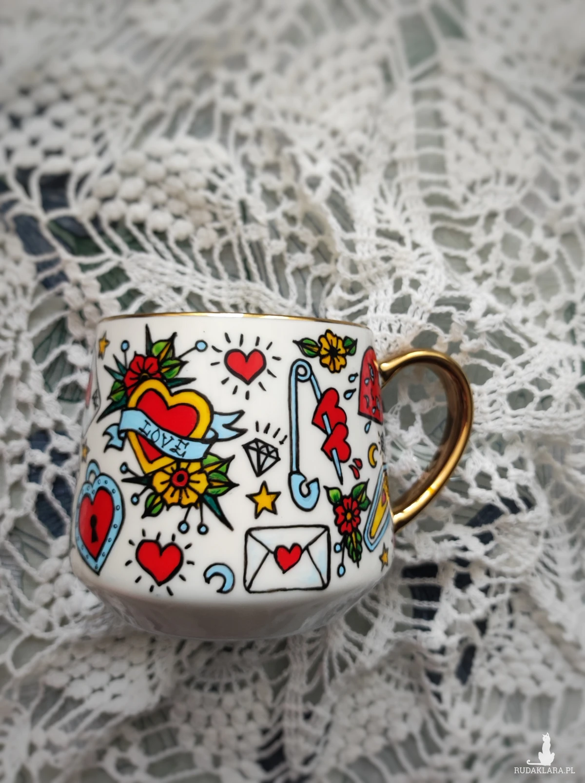 Ręcznie malowany kubek w żywych kolorach, z oryginalnym wzorem będzie doskonałym podarunkiem dla osoby kochającej oryginalne przedmioty. Wzór wykonany został przy użyciu nietoksycznych farb do porcelany, jest wodoodporny - naczynie może być myte ręcznie, bez użycia ostrych narzędzi.