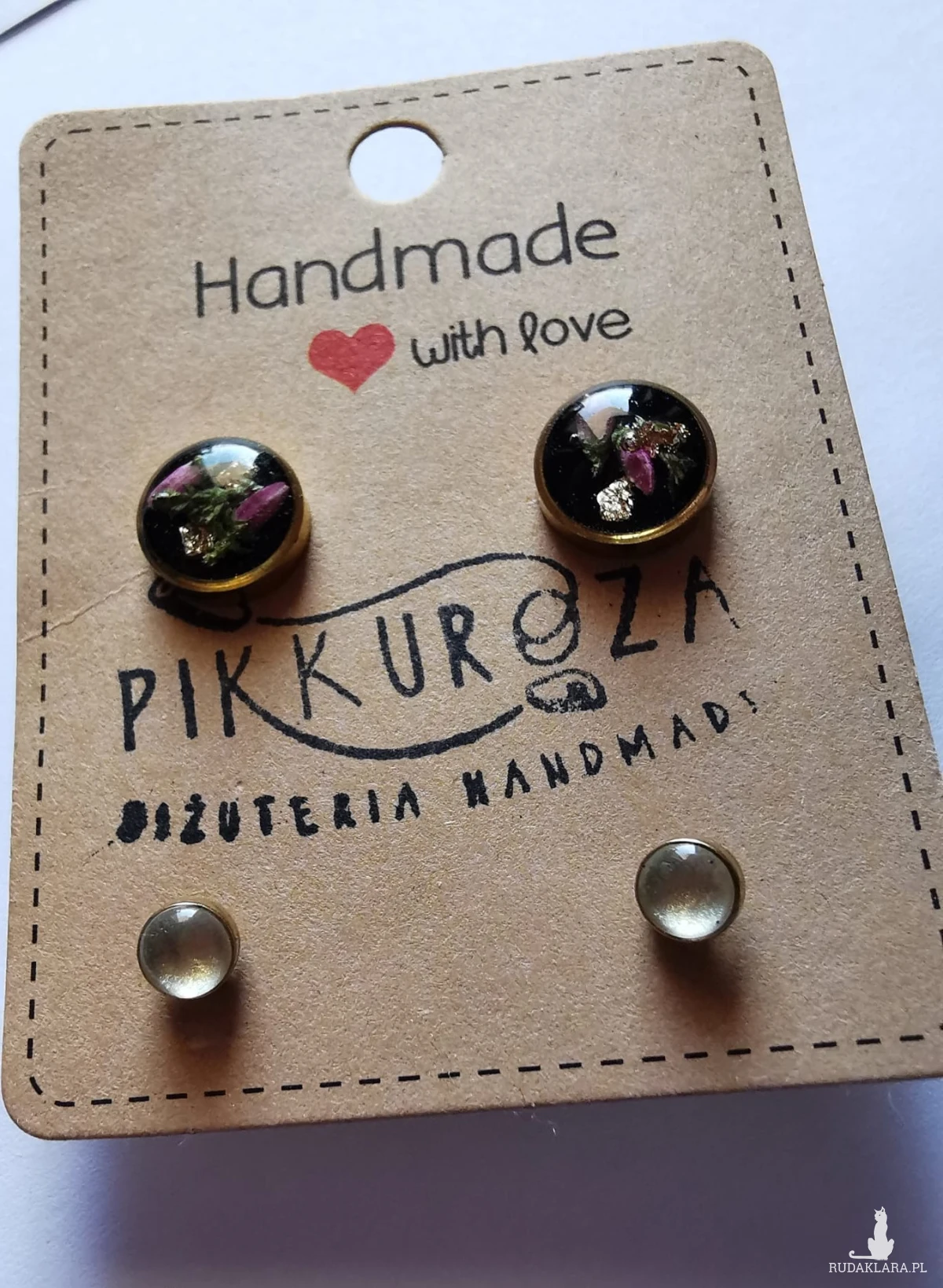 Delikatna, wyjątkowa biżuteria z żywicy. Używam wysokiej jakości dodatków oraz własnoręcznie suszonych kwiatów i zatapiam je w wytrzymałej, dobrej jakości żywicy epoksydowej. Każda sztuka jest tworzona jest ręcznie — niepowtarzalna i jedyna w swoim rodzajuKolory mogą się delikatnie różnić w zależności od kąta padania światła oraz ustawień monitora. Pojedyncze sztuki mogą delikatnie się r...