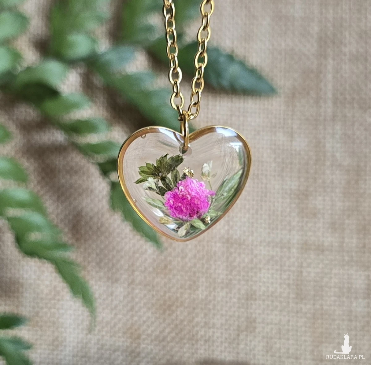 Oferuję Państwu unikalną biżuterię. Zawieszka jest wykonana z suszonych kwiatów i żywicy epoksydowej. Biżuteria jest wspaniałym i oryginalnym prezentem na lata.