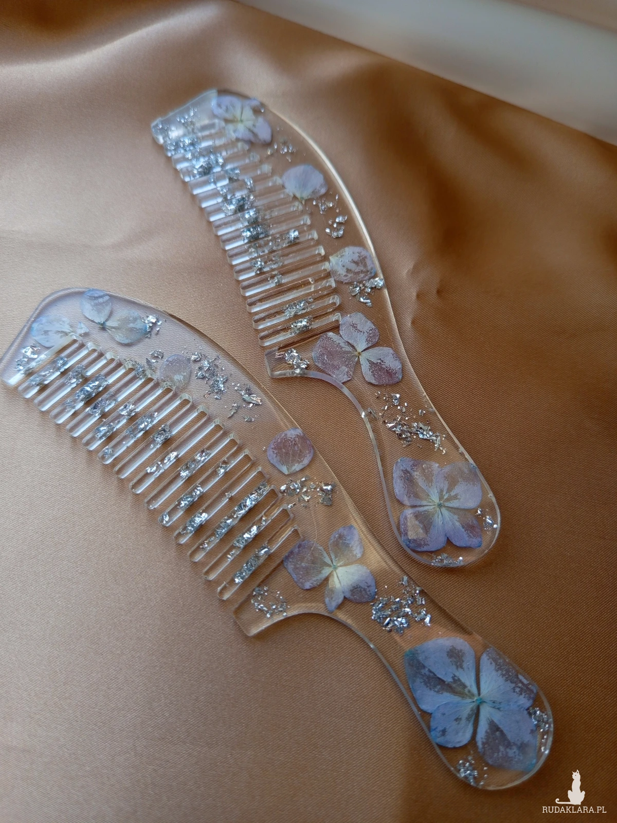 Grzebień z kwiatami hortensji z dodatkiem srebra. 🩵 Pięknie rozczesuje i prezentuje się 🤭