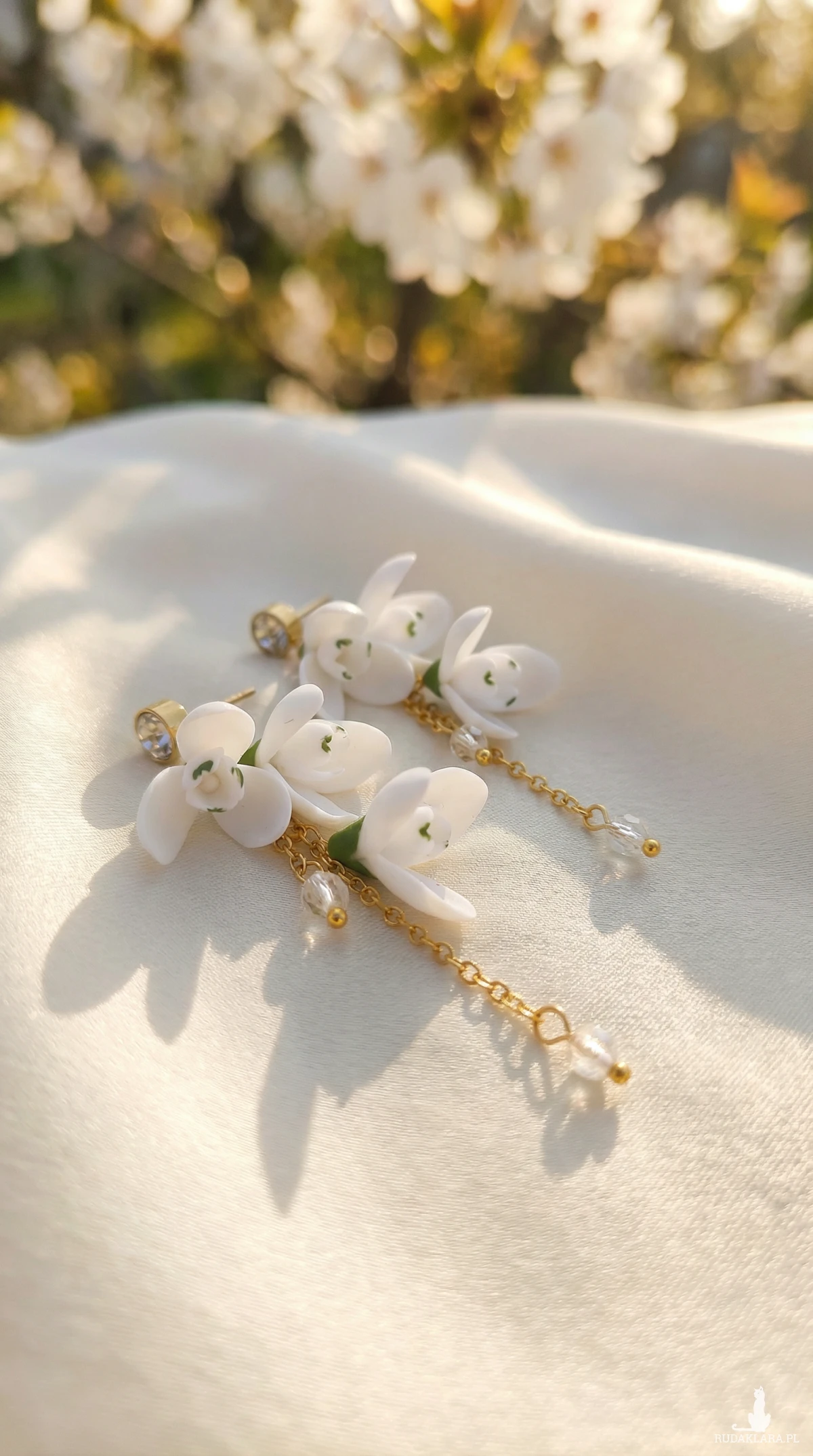 Kolczyki z ręcznie wykonanymi kwiatuszkami z profesjonalnej masy termoutwardzalnej.