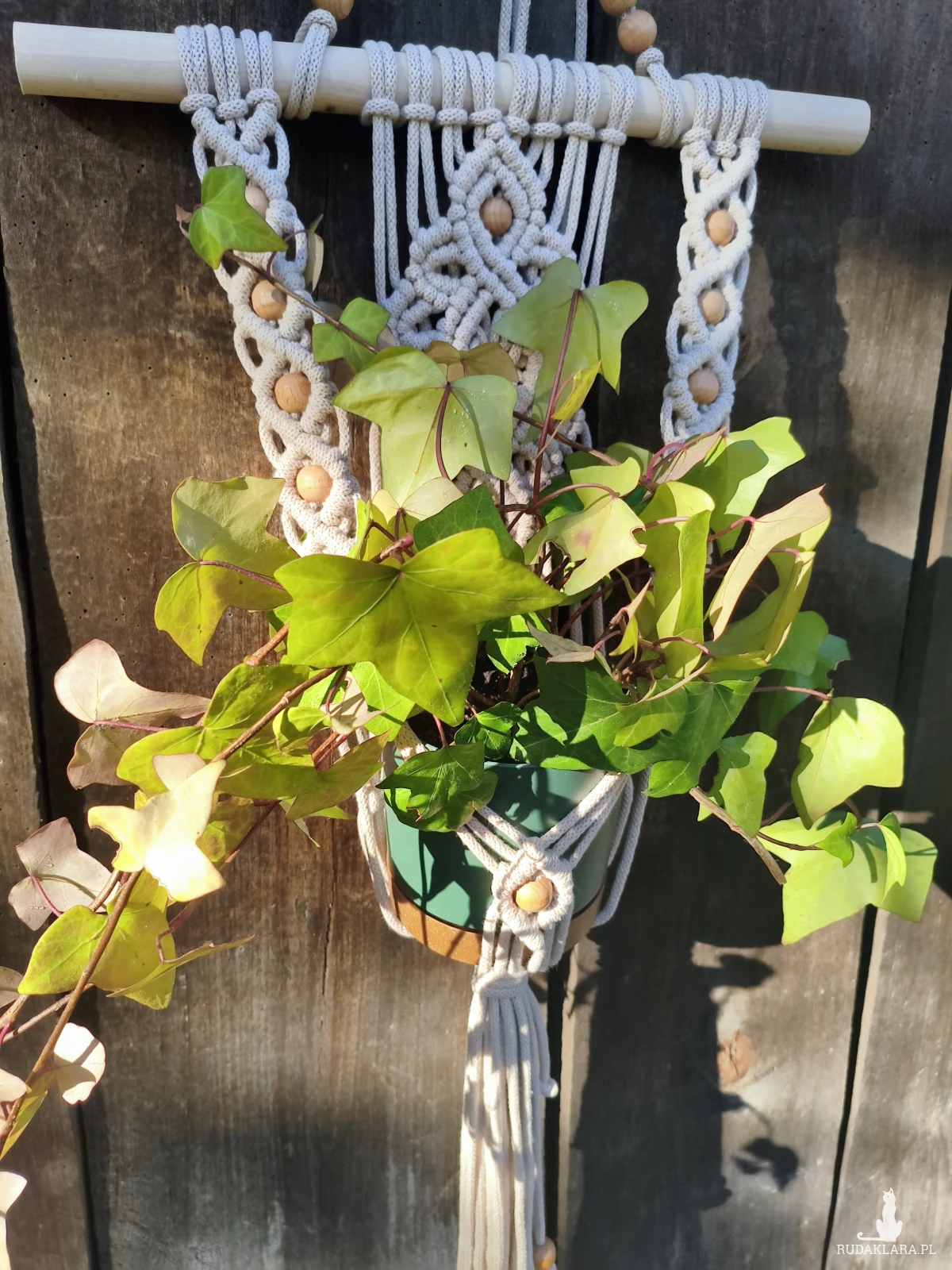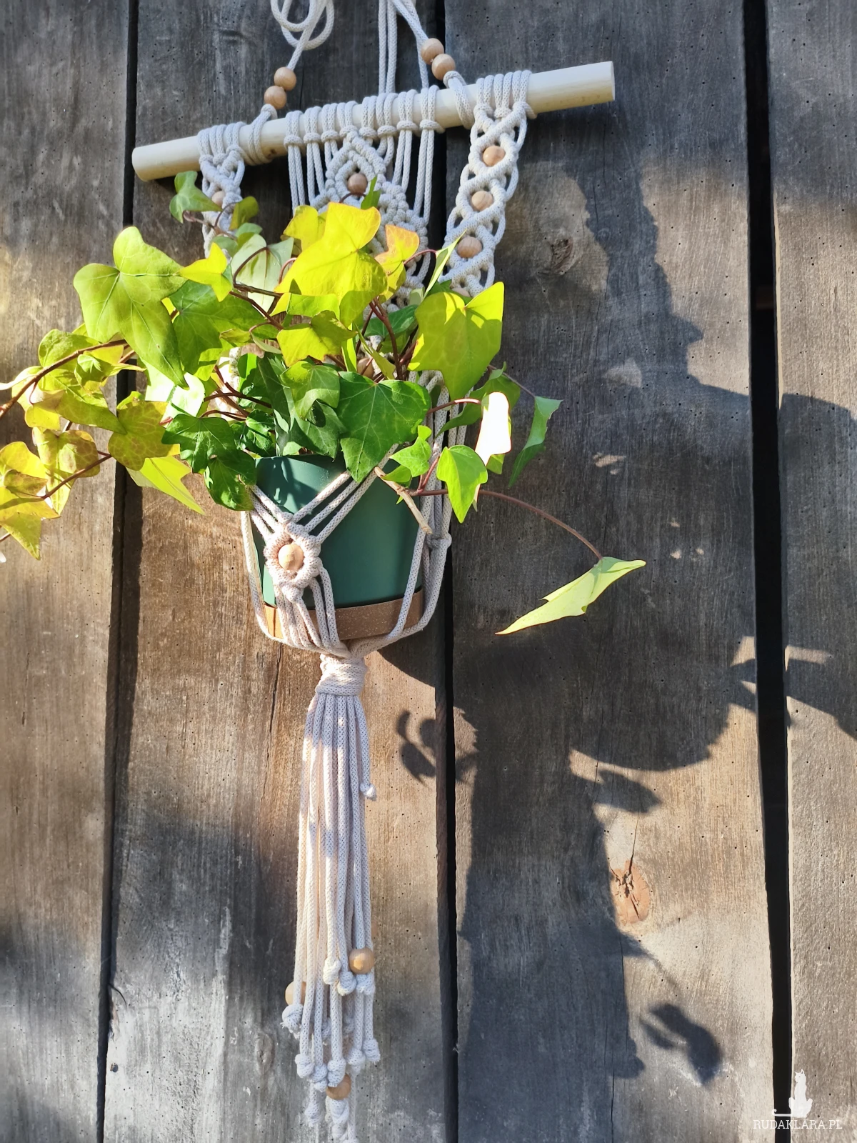 Sprzedam ręcznie wykonany kwietnik w stylu Boho, idealny na jeden kwiat w doniczce. Każdy egzemplarz jest wyplatany z dbałością o detale i ma swój unikalny charakter.