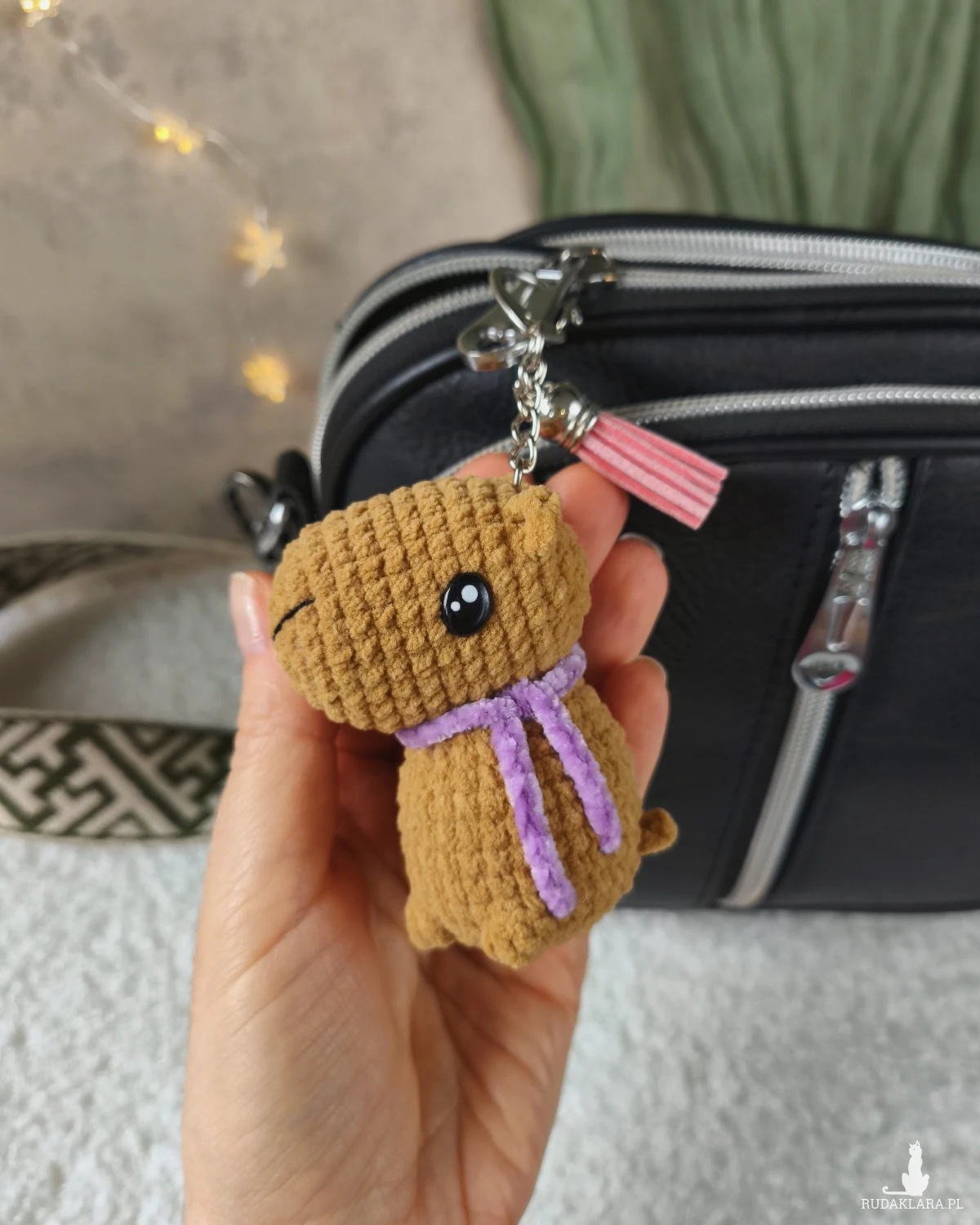 Uroczy breloczek kapibara to doskonały dodatek do plecaka/torebki/kluczy oraz wspaniały prezent na każdą okazję i wyjątkowy moment.
