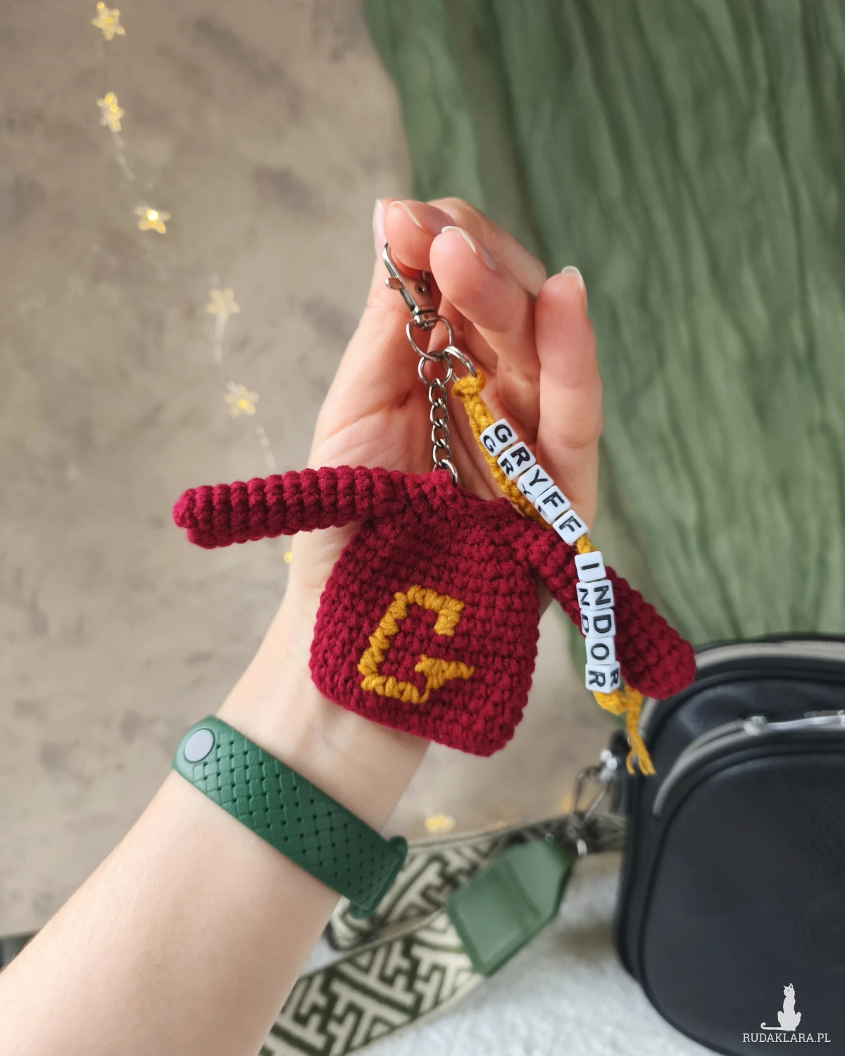 Dodatkowym, wyjątkowym elementem jest pleciony sznurek z nazwą domu szkoły magii "Gryffindor". To detal, który pozwala podkreślić przynależność do ulubionego domu czarodziejów i nadaje brelokowi jeszcze bardziej magiczny charakter.