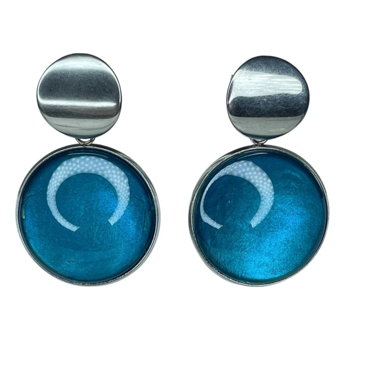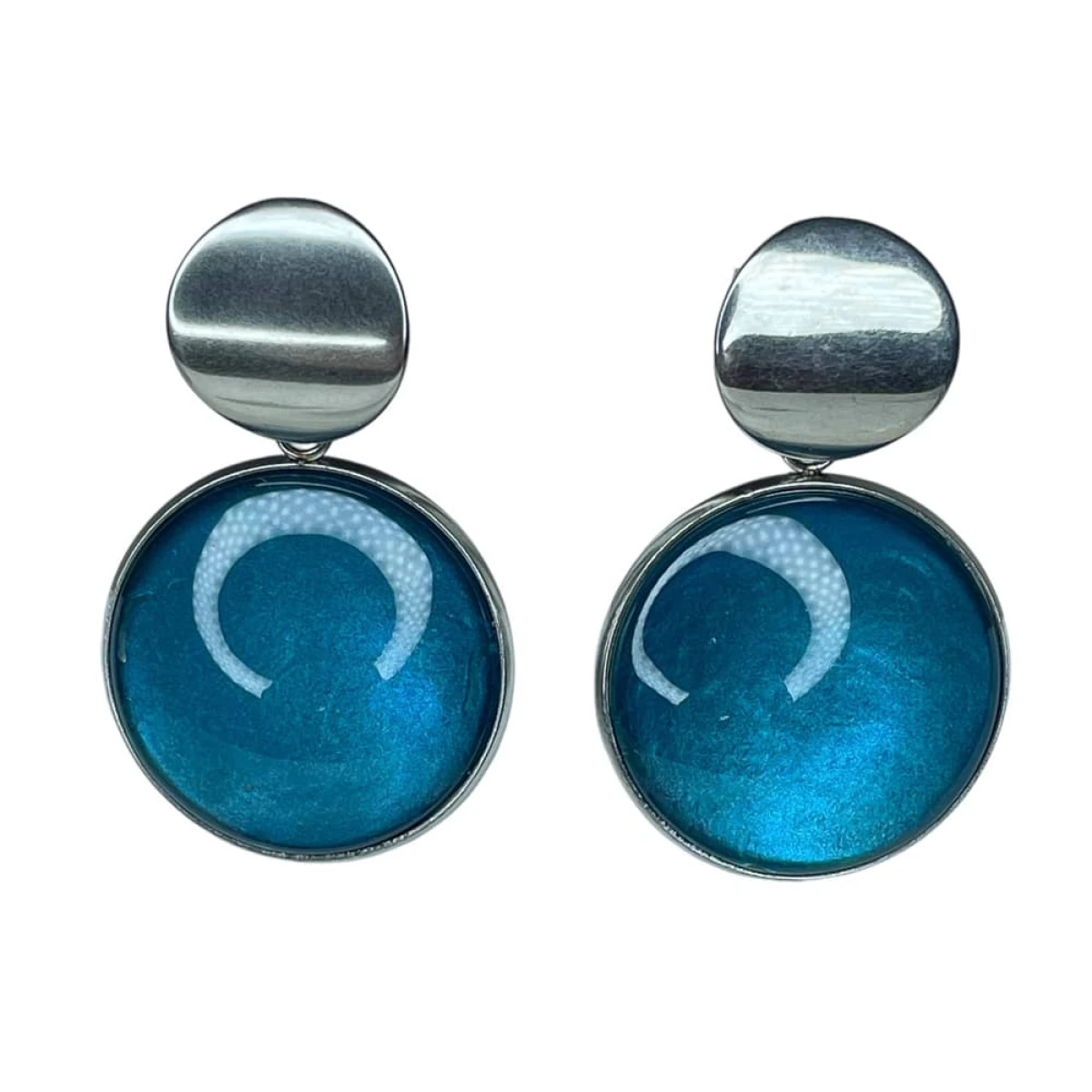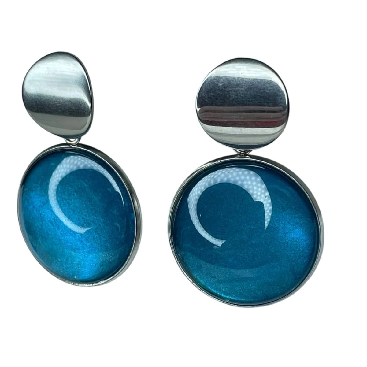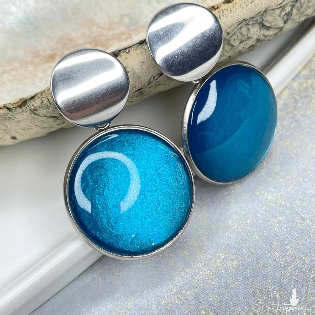 Te pełne blasku kolczyki są częścią kolekcji “W blasku perłowego księżyca”. Kolczyki wykonane są z ręcznie malowanych kaboszonów umieszczonych w bazach ze stali szlachetnej. Szklane elementy zachwycają subtelnym, opalizującym blaskiem, który jest niczym odbicie księżyca na tafli wody. Kolczyki mienią się w świetle, przyciągając wzrok i dodają elegancji każdej stylizacji. Ten dodatek jest idealny dla osób ceniących sobie wyrafinowaną i ponadczasową biżuterię.