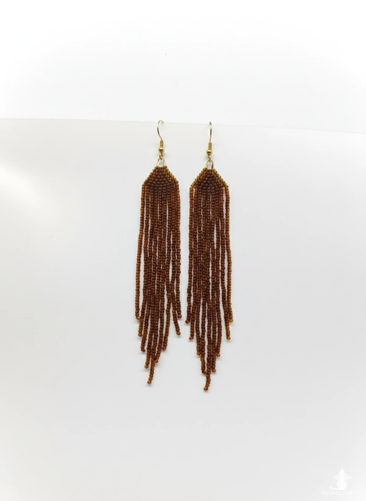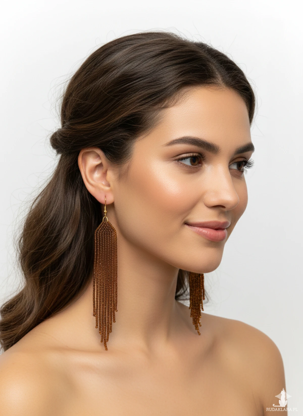 Długie Kolczyki Beadingowe - Głęboki Brąz (13,5 cm)