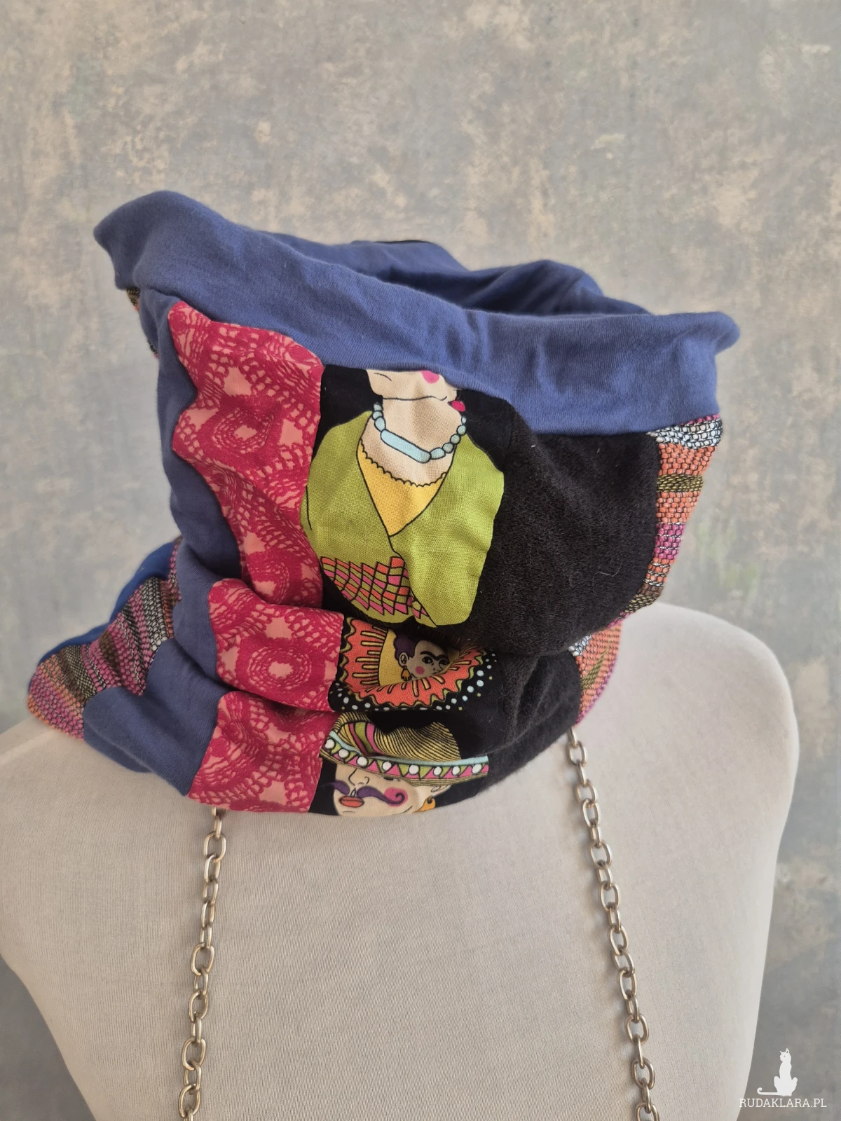 komin uszyty z z różnych tkanin rozmiar uniwersalny; oddałam łobuzowi serce w rozterce boks G1