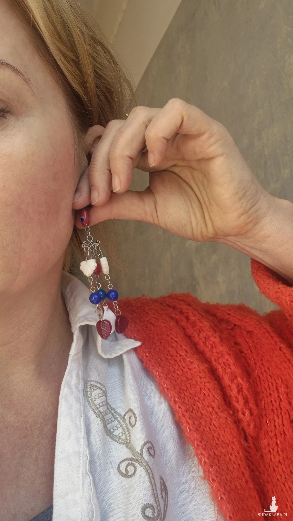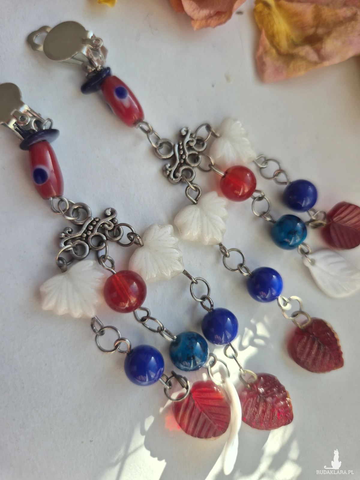 Klipsy : natrętna jak komar,nie odpuszczała, ciągle czegoś innego chciała.Klipsy kolorowy lekkie długie wiszące rękodzieło wykonane w pojedynczym egzemplarzu Box X1