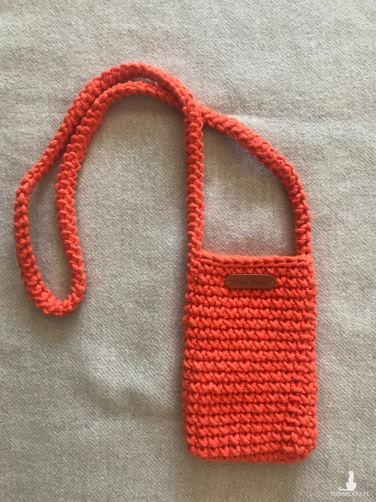 Ręcznie robiona torba na telefon ze sznurka bawełnianego ,torebka nie jest zapinana.
