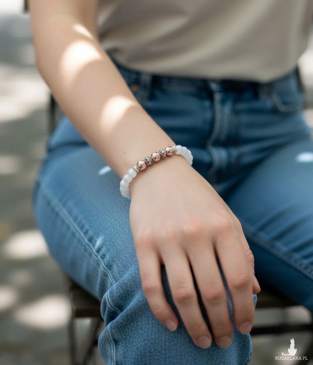 Bransoletka posiada wygodne zapięcie typu karabińczyk, dzięki czemu jest łatwa w zakładaniu i bezpieczna w noszeniu. Idealnie sprawdzi się zarówno na co dzień, jak i na specjalne okazje – świetny dodatek do sukienki, eleganckiej stylizacji czy jako prezent.