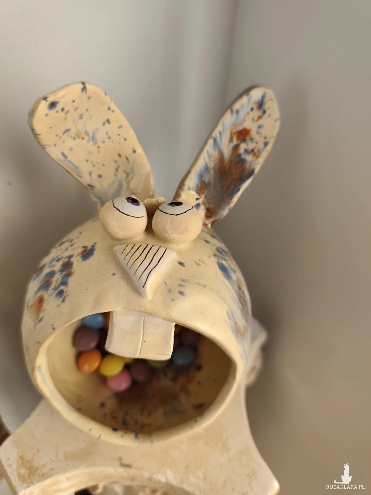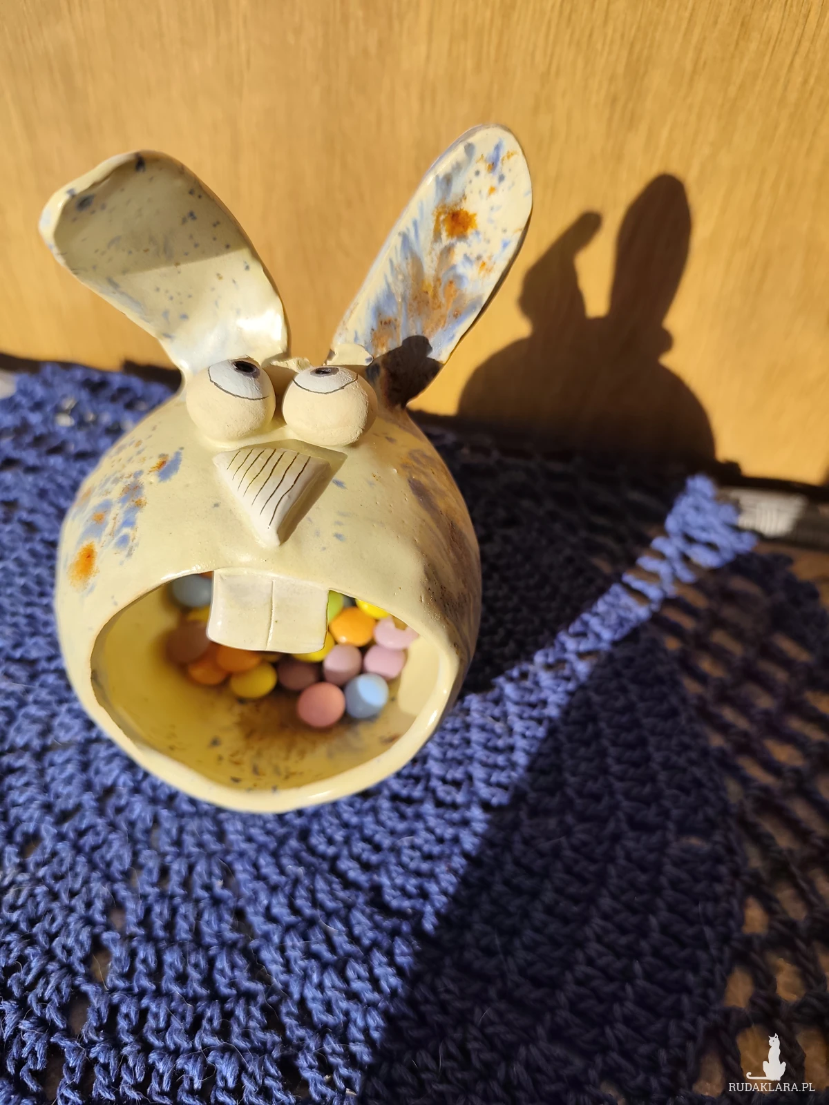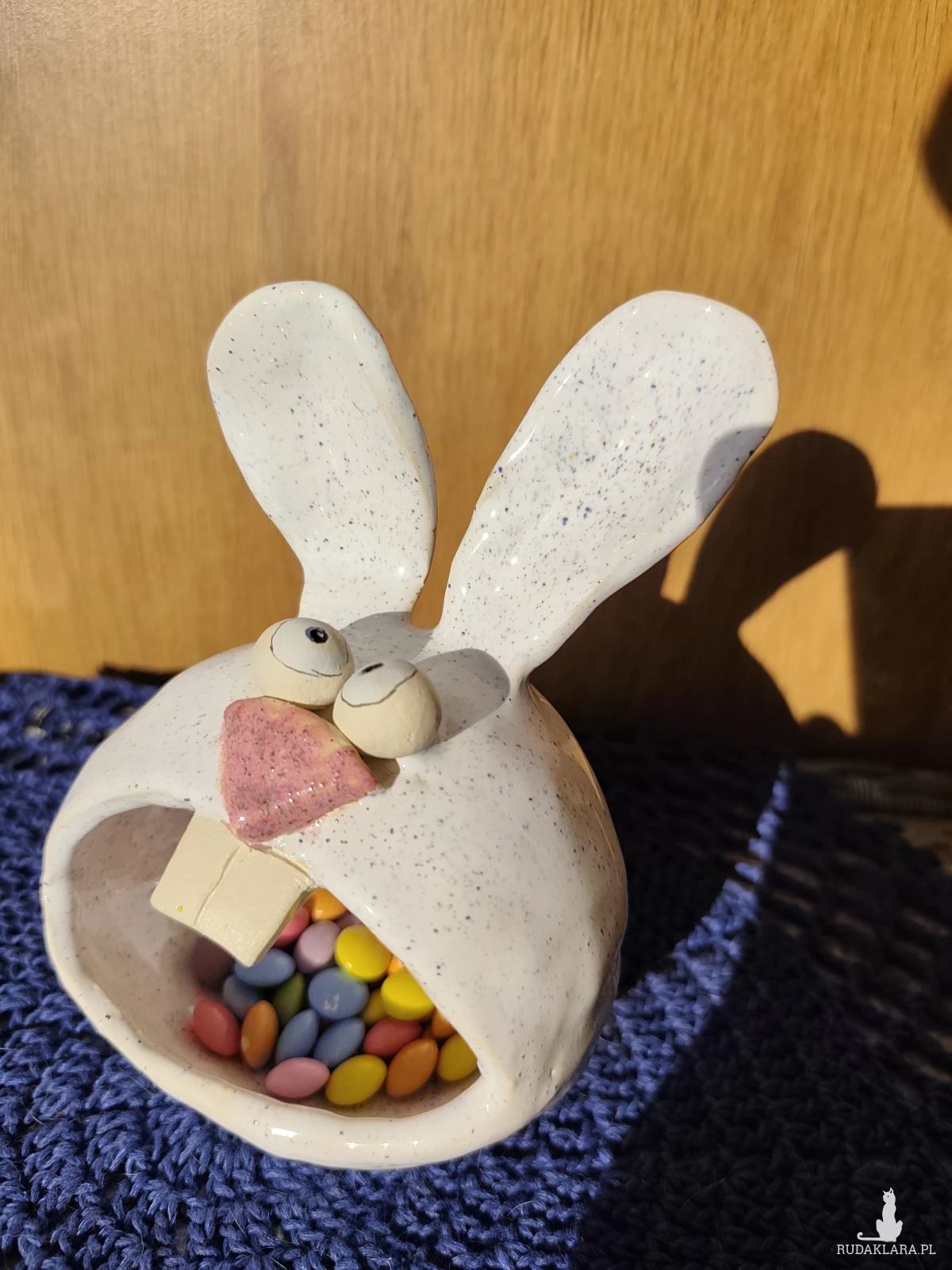 Królik miseczka ceramiczna na słodkie jajeczka -Wielkanoc, wykonana ręcznie, szkliwiona i dwukrotnie wypalana w piecu ceramicznym na wysoka temperaturę. Szkliwo do kontaktu z żywnością. Polecam jest uroczy.