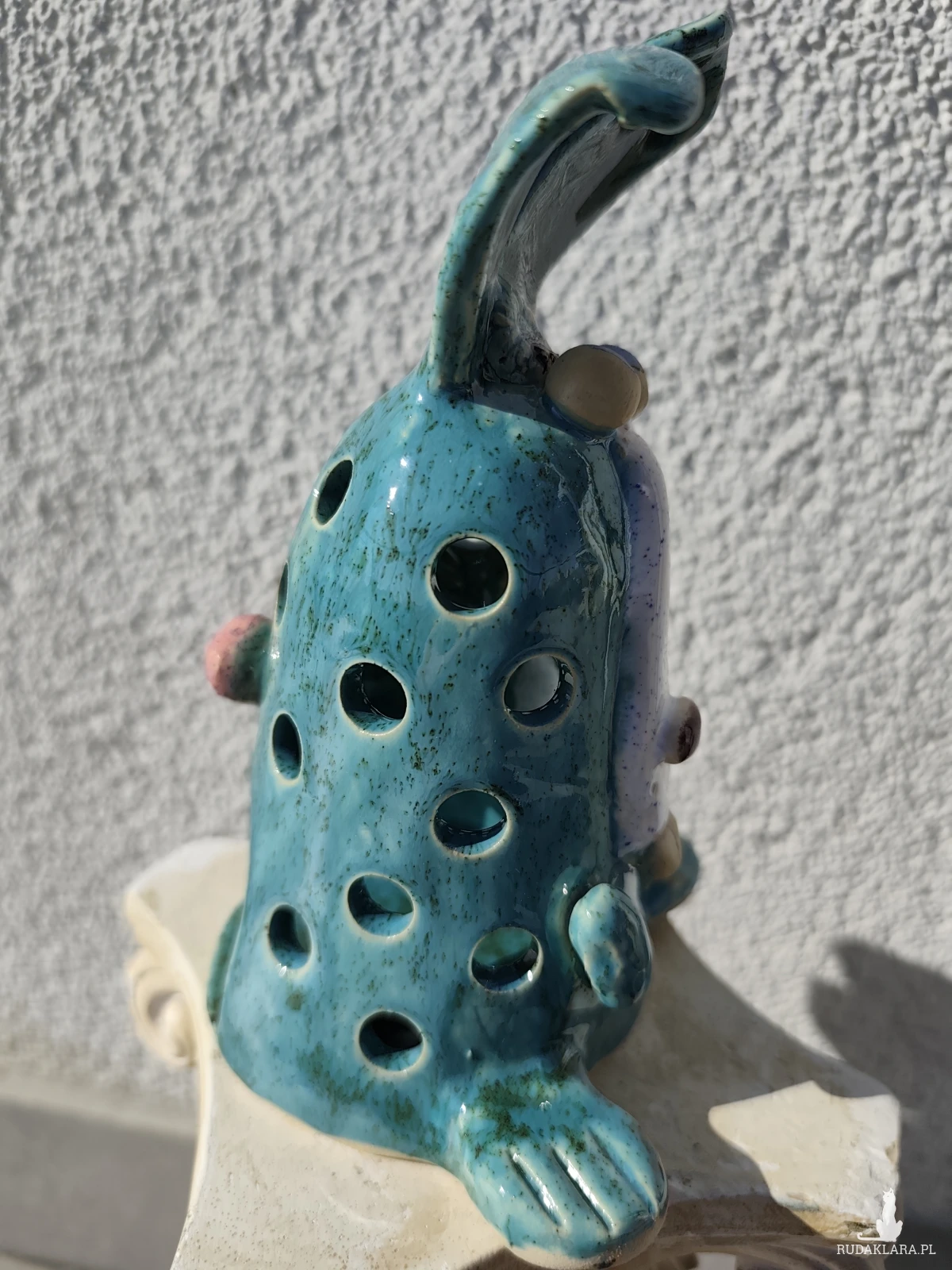Królik ceramiczny lampion, ręcznie wykonany, szkliwiony i dwukrotnie wypalany w piecu ceramicznym na wysoką temperaturę.