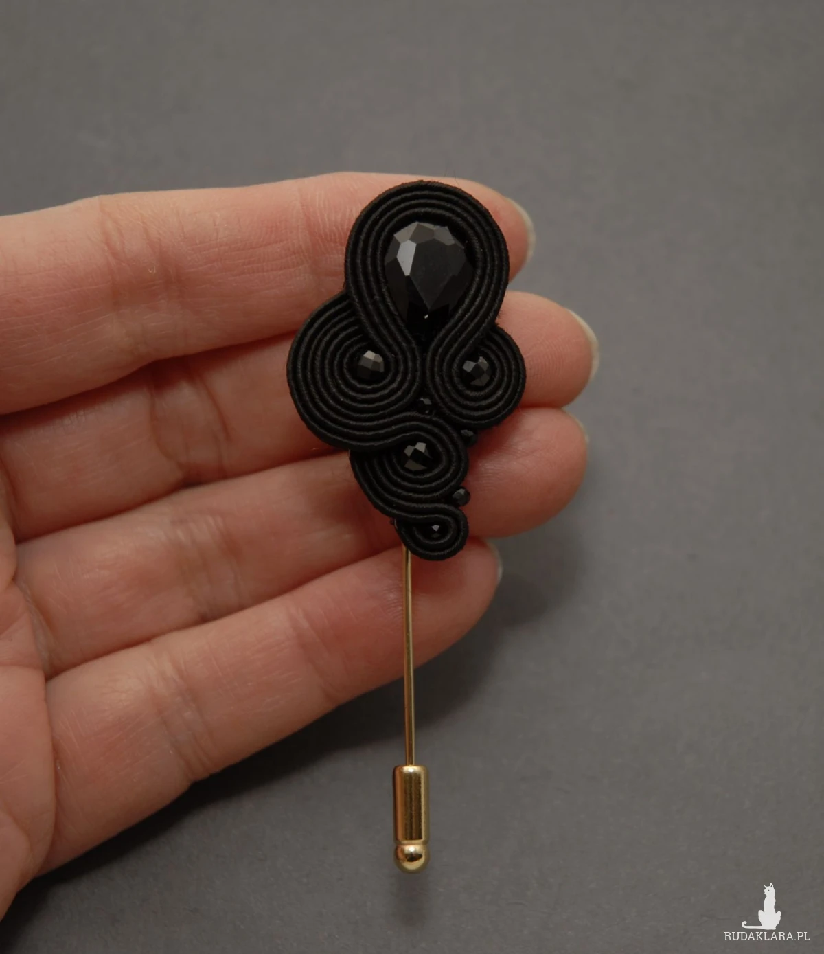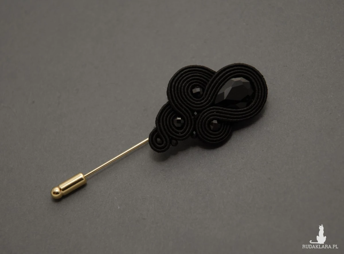 oferuję broszkę (szpilę) zrobioną techniką sutasz, ozdobioną fasetowanymi kaboszonami i onyksami