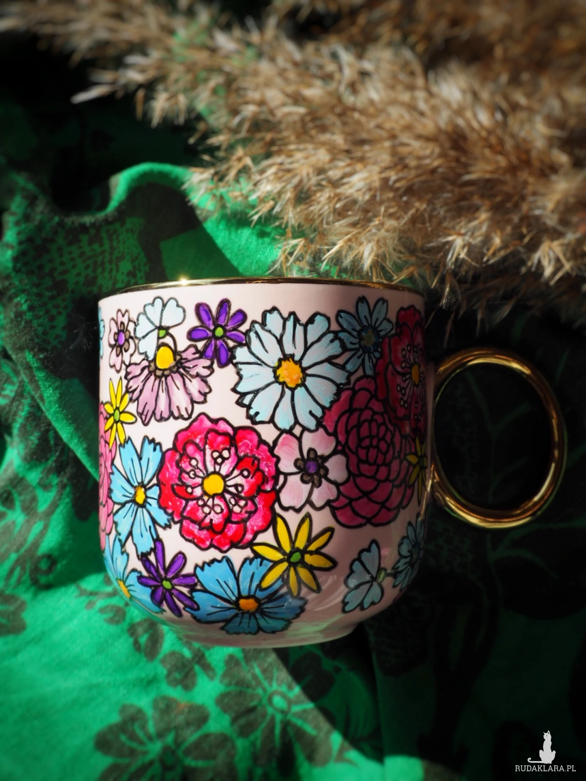 Wzór wykonany został przy użyciu nietoksycznych farb do porcelany, jest wodoodporny - naczynie może być myte ręcznie, bez użycia ostrych narzędzi.