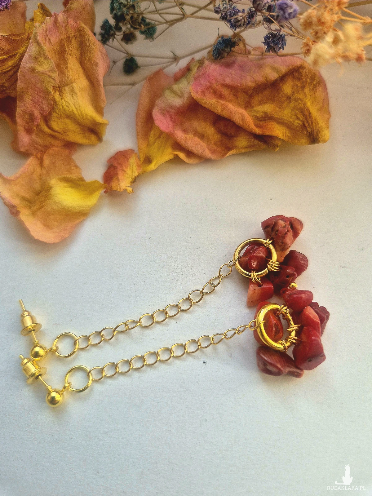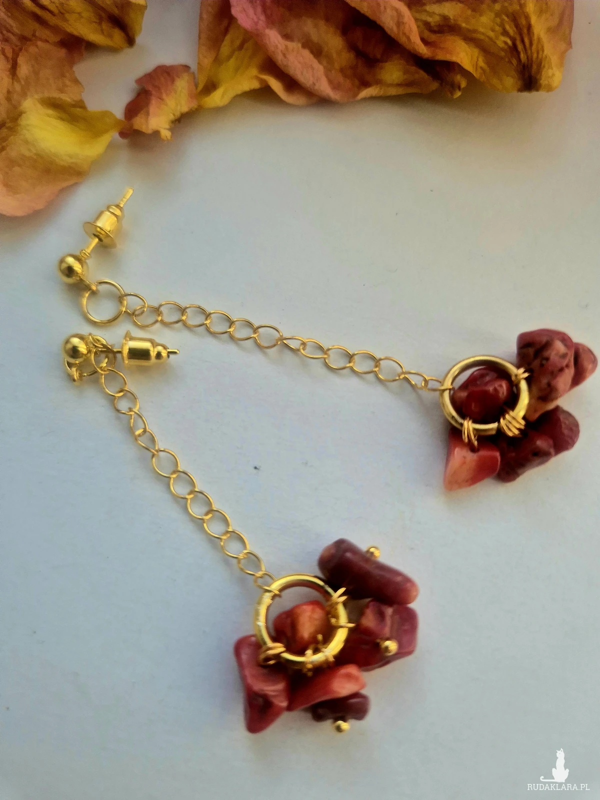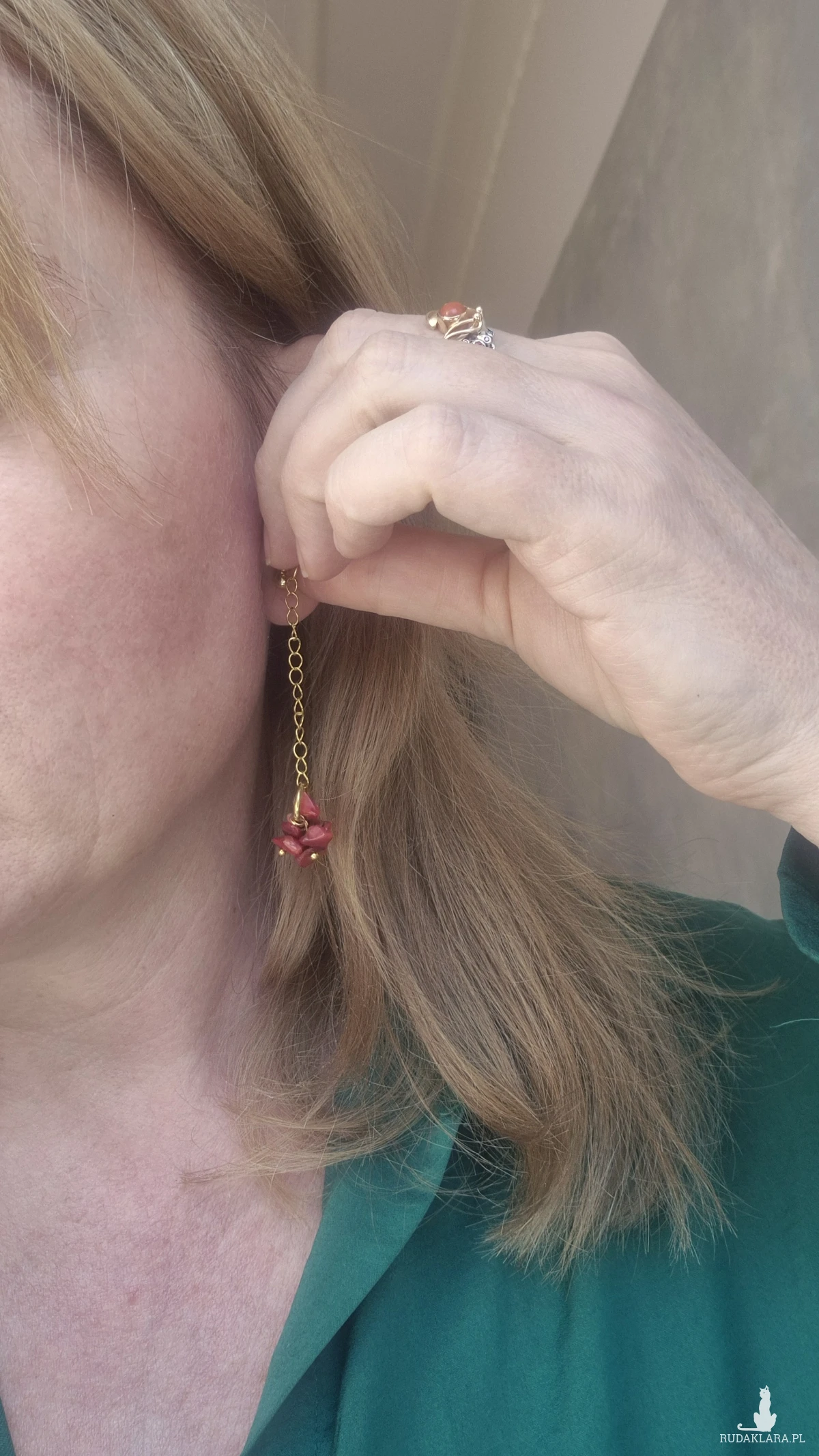 Kolczyki munerały koral sieczka,końcówka ze stali nierdzewnej, nie uczulające, polecam box x1