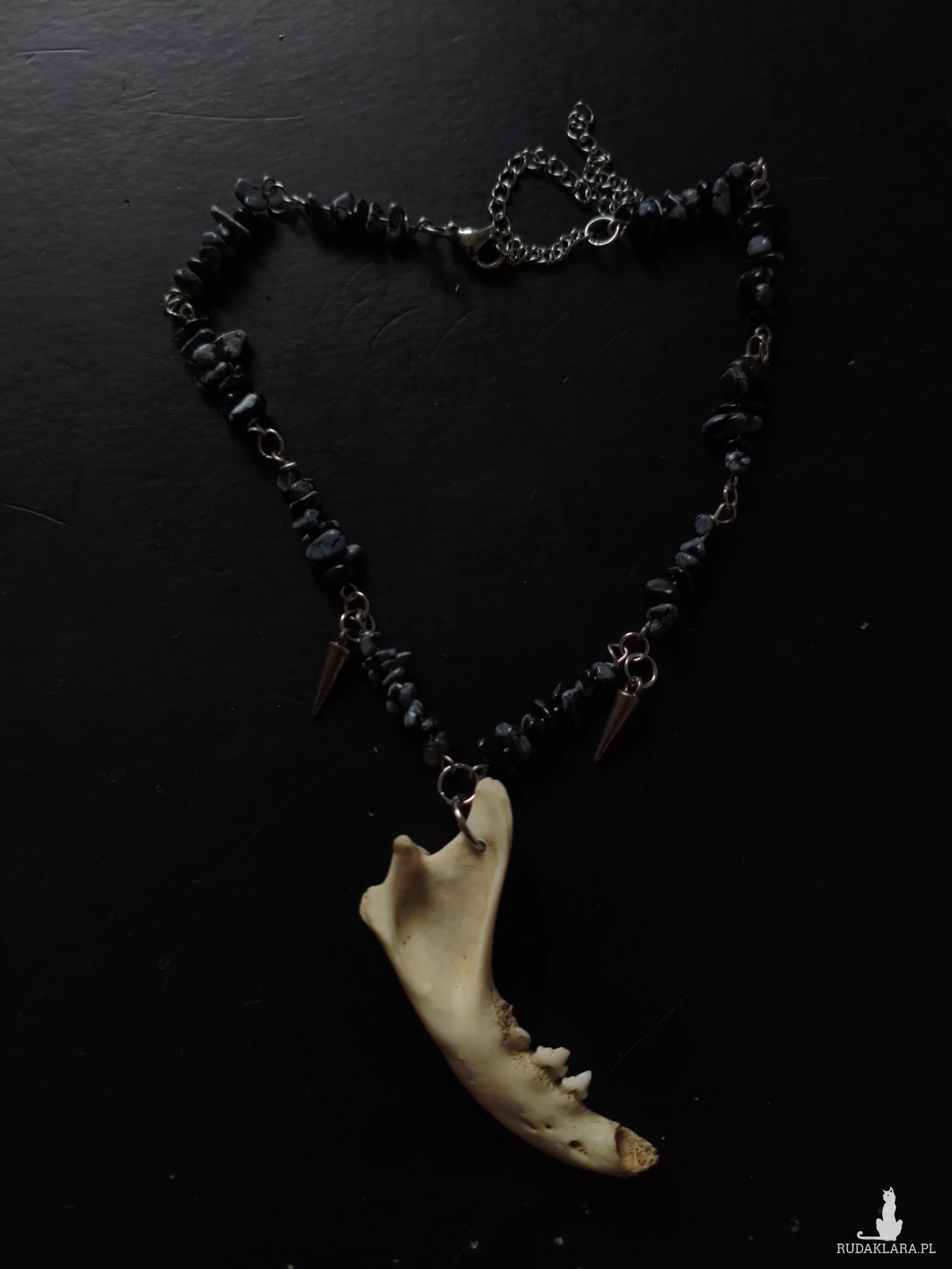 Na profilu znajdą państwo biżuterie oraz niestandardowe ramki z czaszkami/ kośćmi zwierząt. Materiały z jakich korzystam to kamienie naturalne, kości oraz stal nierdzewna/chirurgiczna (rzadziej srebro) Kości pozyskiwane są etycznie! Wysyłki w piątek oraz weekend
