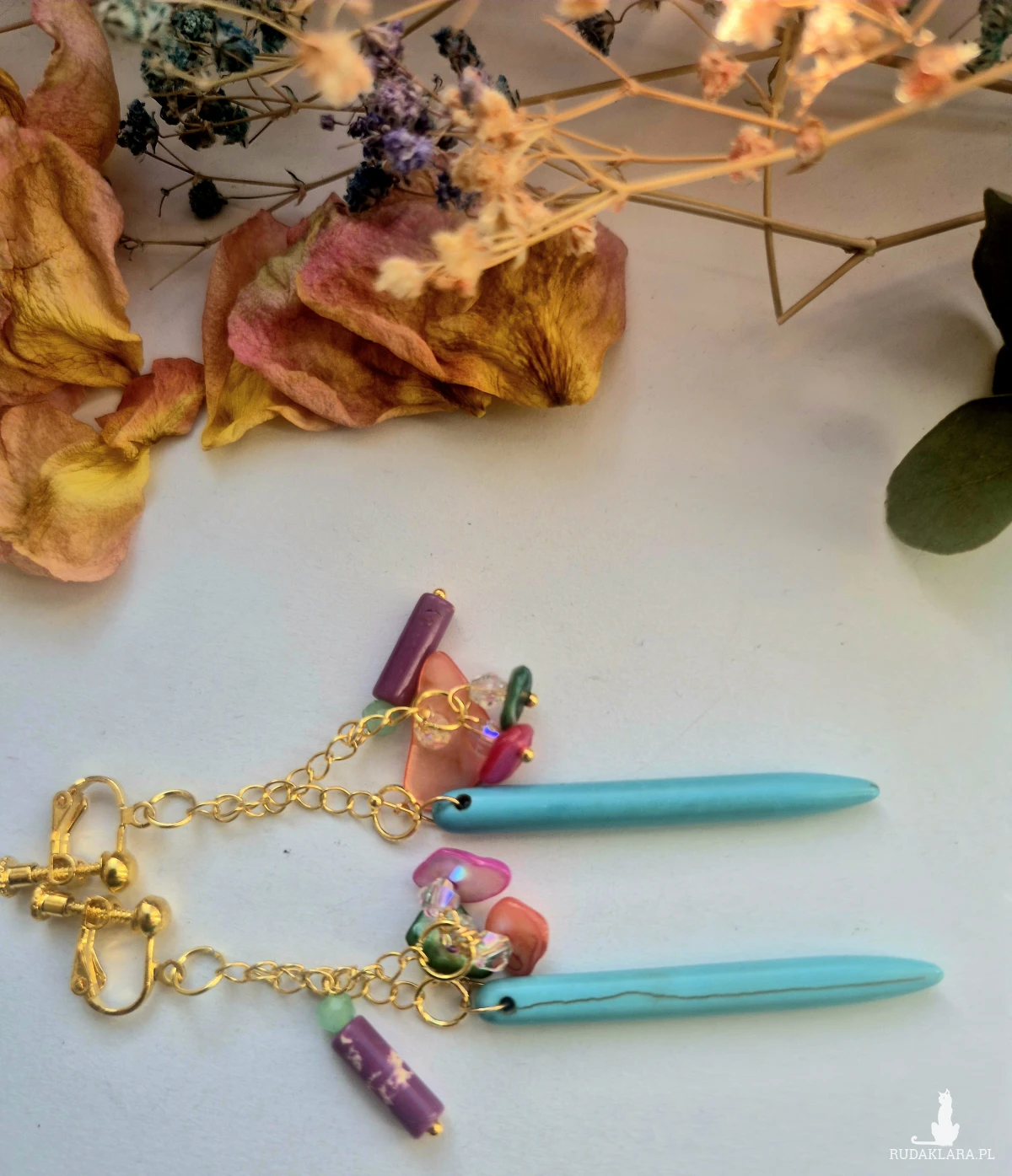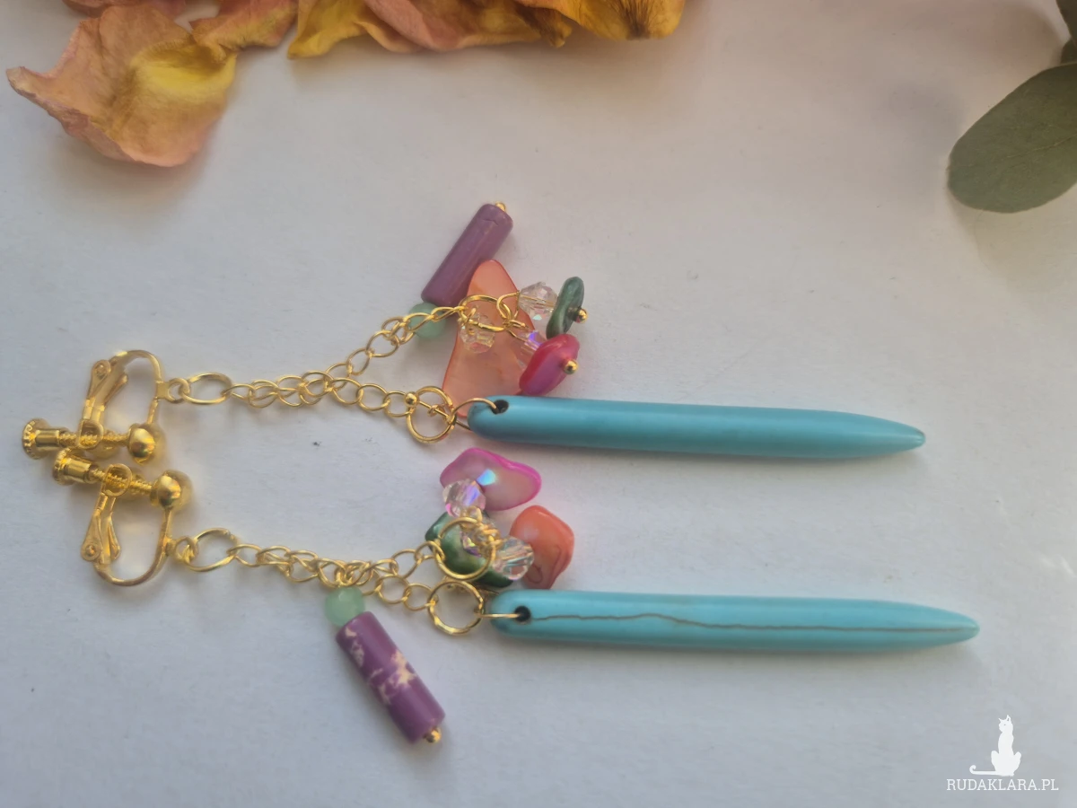 Klipsy kolorowe muszle i koraliki ,rękodzieło wykonane w pojedynczym egzemplarzu Box X1
