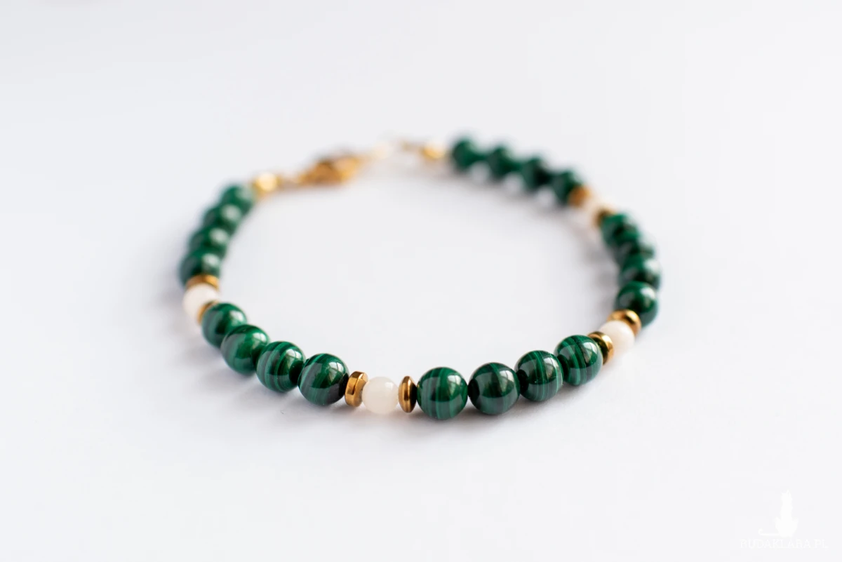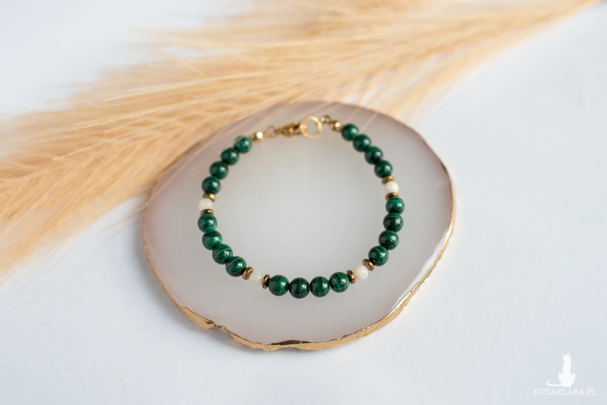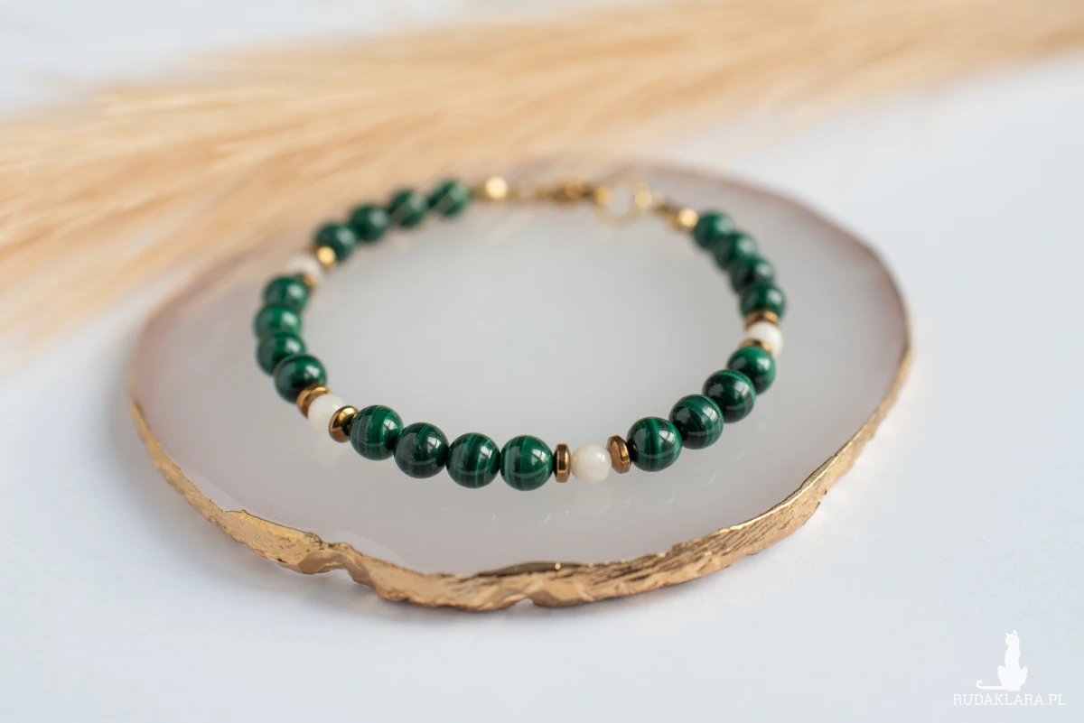 Malachit zachwyca intensywną, nasyconą zielenią z charakterystycznymi, falistymi wzorami. Ceniony jest za silne właściwości ochronne, transformujące i lecznicze.