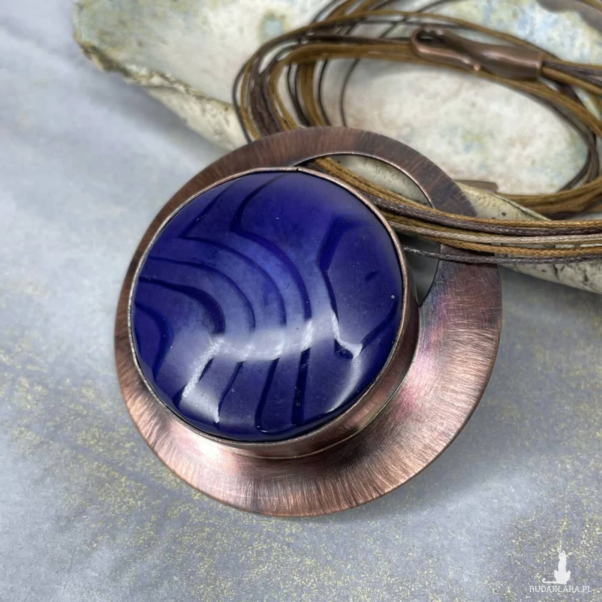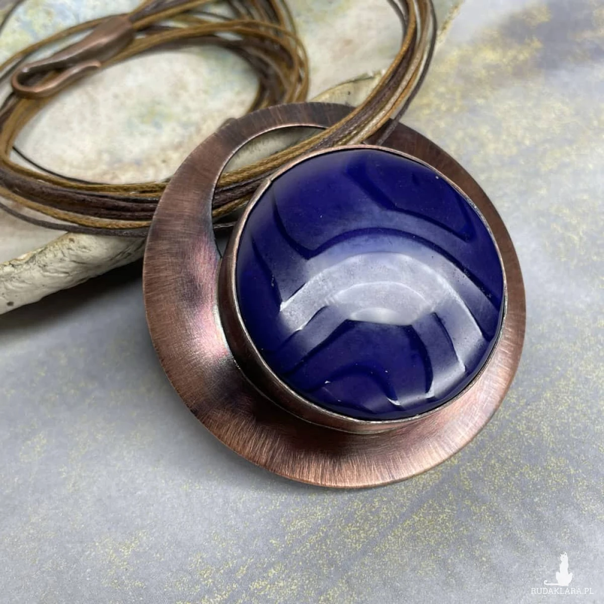 Naszyjnik z kolekcji „Agatowe Krajobrazy” to ręcznie wykonana biżuteria, w której naturalne piękno kamienia spotyka się z artystycznym rzemiosłem. Centralnym elementem kompozycji jest agat o unikatowym rysunku i barwach przywodzących na myśl malownicze pejzaże natury. Oprawa z miedzi, poddanej procesom polerowania, oksydowania i przecierania, nadaje całości szlachetnego, lekko surowego charakteru i pięknie kontrastuje z powierzchnią kamienia. To wyjątkowy dodatek dla osób ceniących biżuterię z charakterem – naturalną, niepowtarzalną i wykonaną ręcznie.