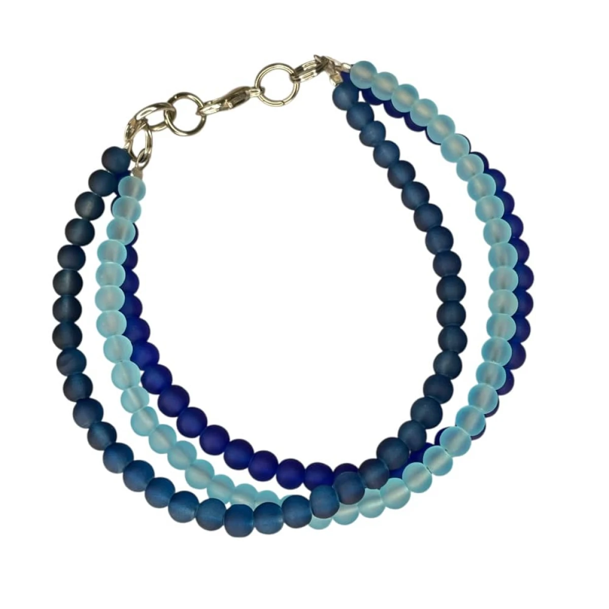 Bransoletka z koralików w odcieniach nieba to delikatny dodatek inspirowany spokojem jasnego dnia i głębokim kolorem nocnego nieba. Trzy sznury matowych koralików łączą różne tony błękitu i stonowanego granatu, tworząc spójną i przyjemną dla oka kompozycję. Srebrzyste elementy nadają całości nowoczesny charakter, a zapięcie na karabińczyk zapewnia wygodę i łatwość noszenia. To bransoletka, która subtelnie ożywia codzienne stylizacje, wprowadzając do nich nutę koloru i spokojnej elegancji.