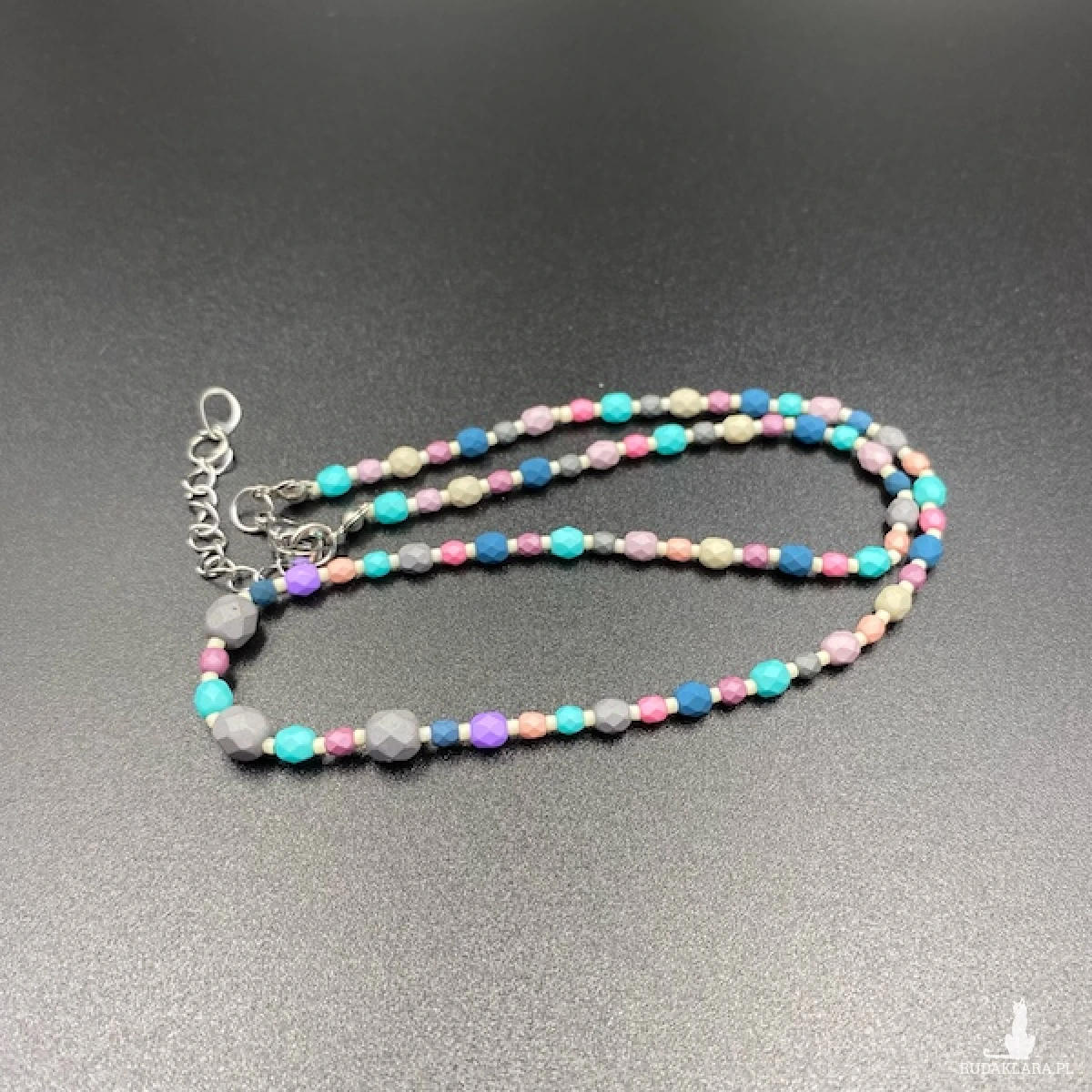 Krótki naszyjnik został wykonany ręcznie z czeskich, szklanych koralików Fire Polish 3, 4 i 6 mm w pastelowych kolorach .
