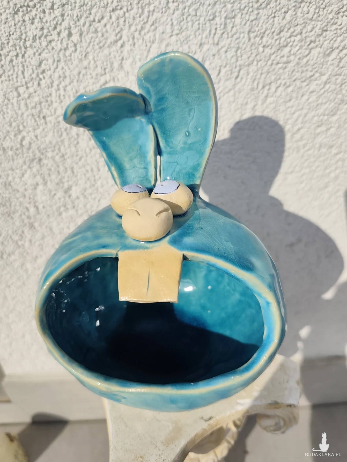 Królik ceramiczny miseczka na słodycze, ręcznie wykonany, szkliwiony i dwukrotnie wypalany w piecu ceramicznym na wysoką temperaturę.