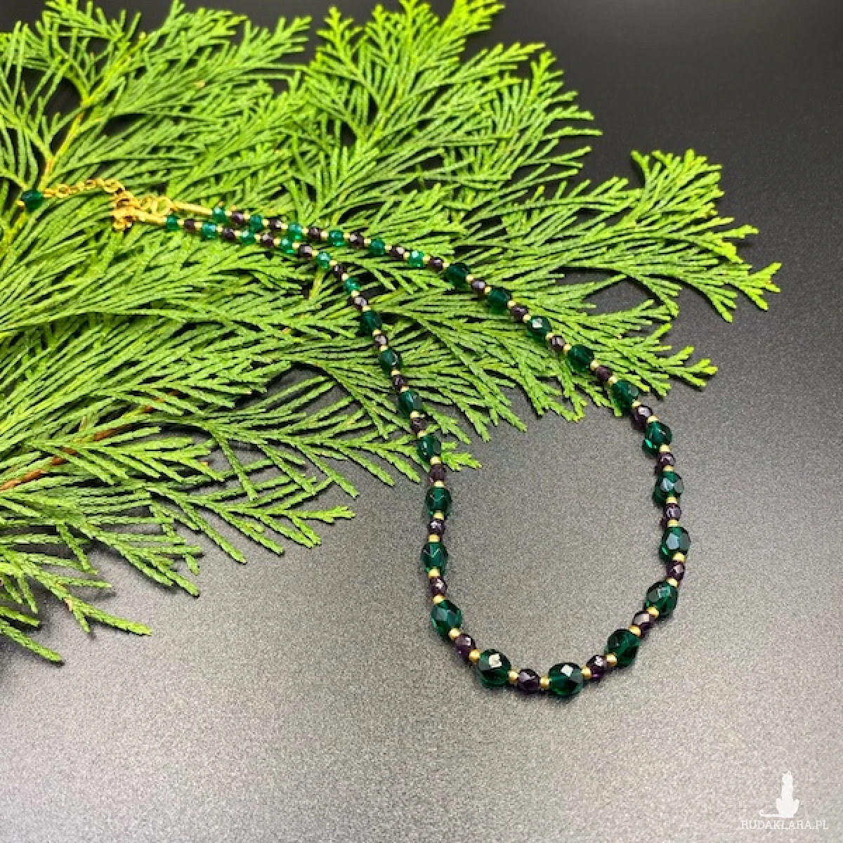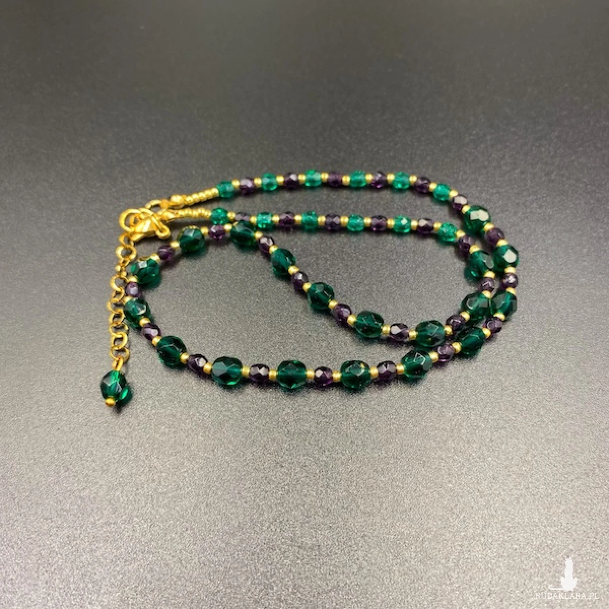 Krótki naszyjnik został wykonany ręcznie z czeskich, szklanych koralików szlifowanych Fire Polish 4 i 6 mm.