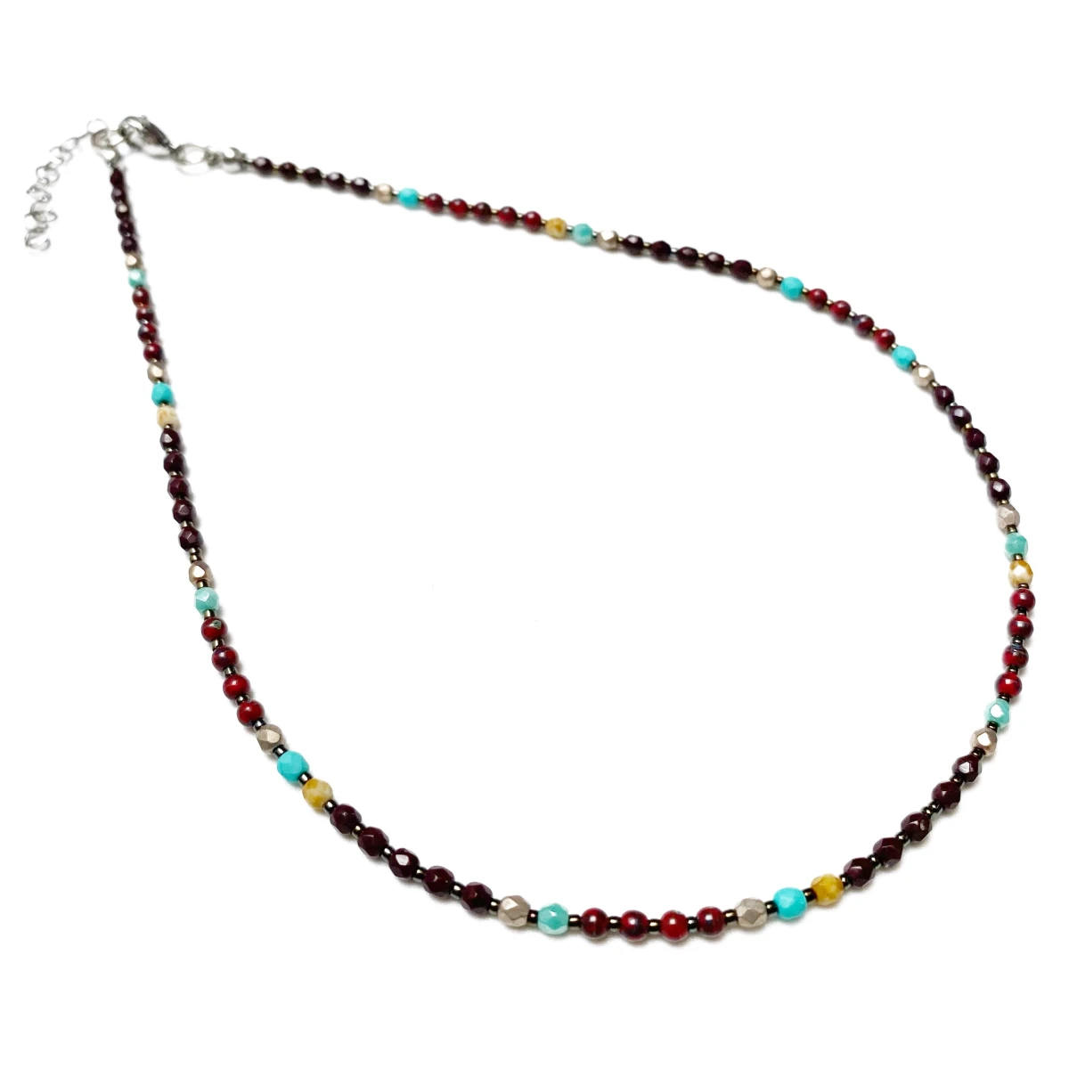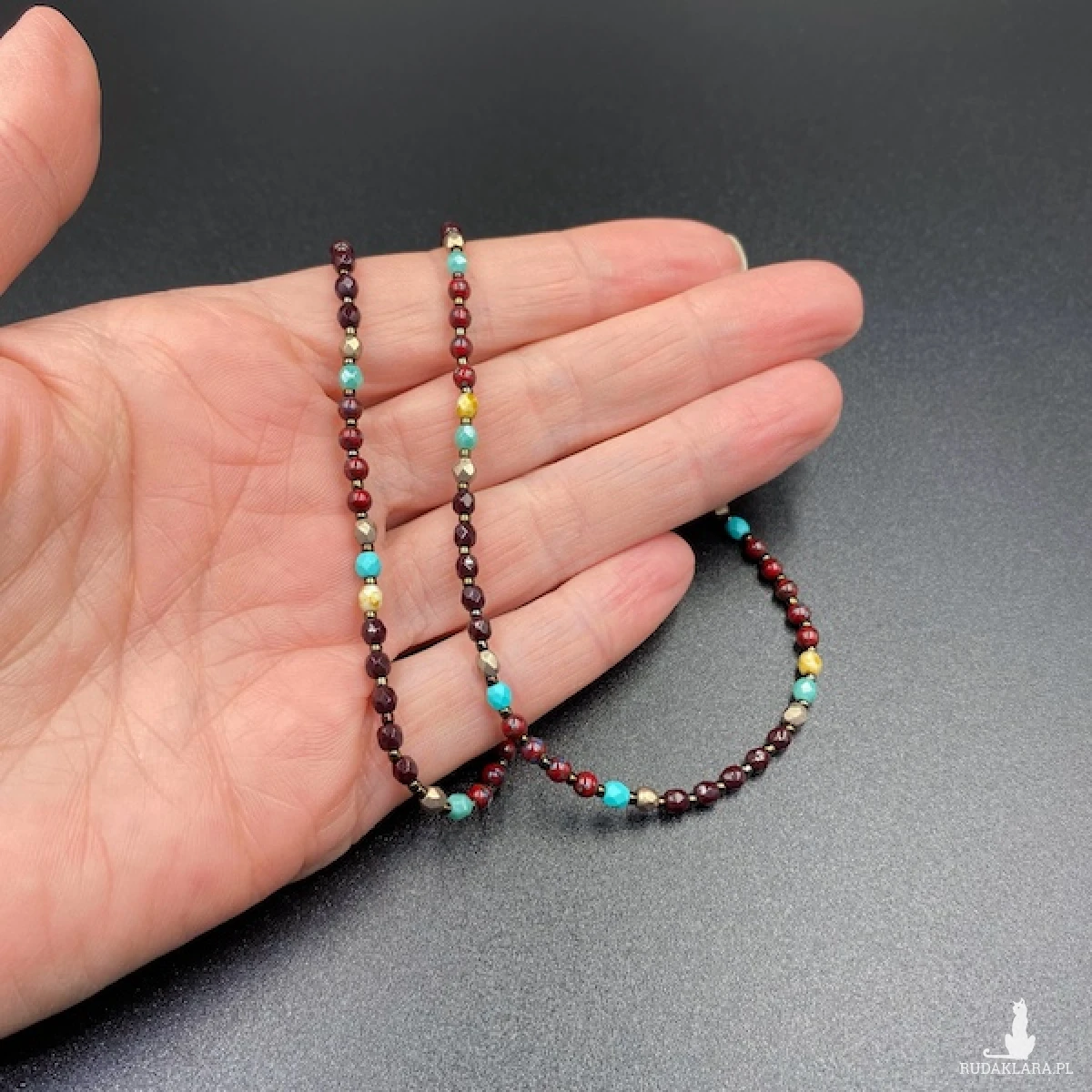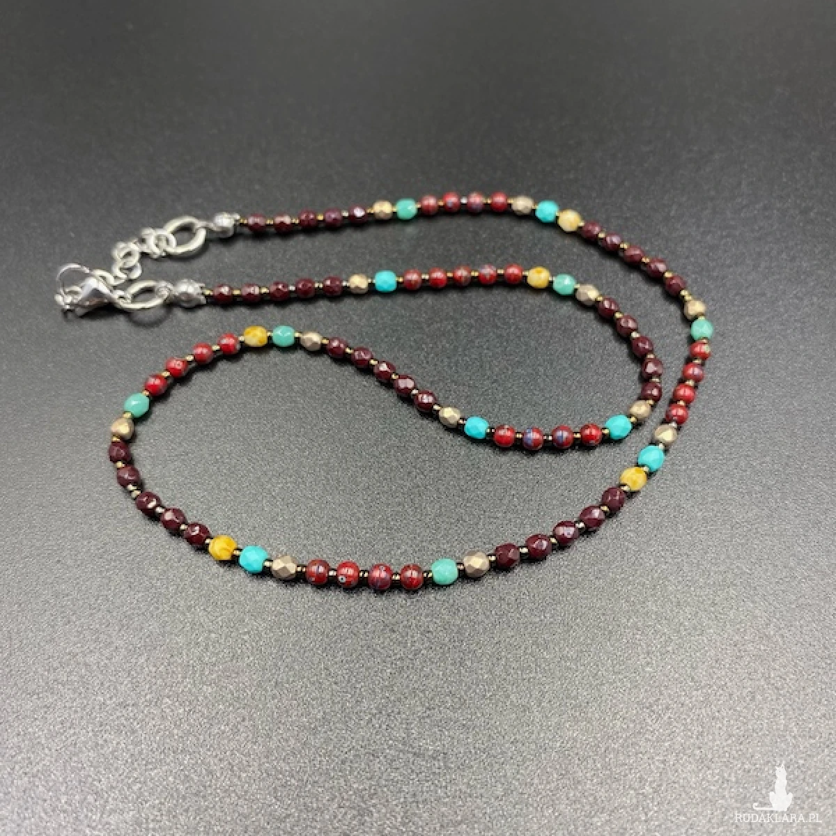 Krótki naszyjnik został wykonany ręcznie z czeskich, szklanych koralików szlifowanych Fire Polish 3 mm.