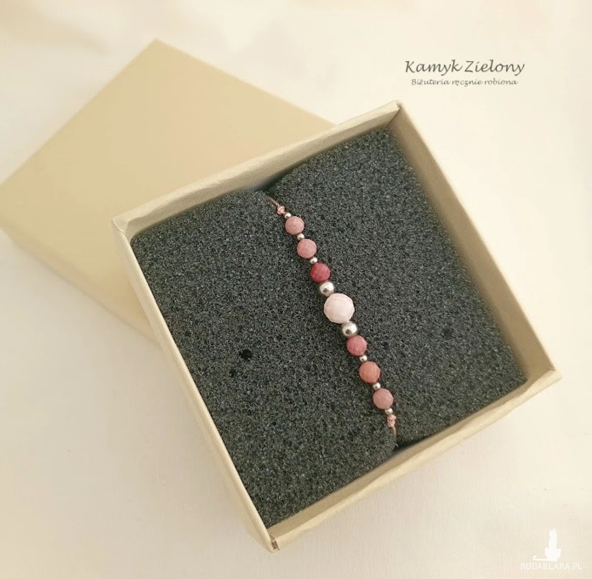 Bransoletka jest sprzedawana w ozdobnym pudełeczku z welurową wkładką.
