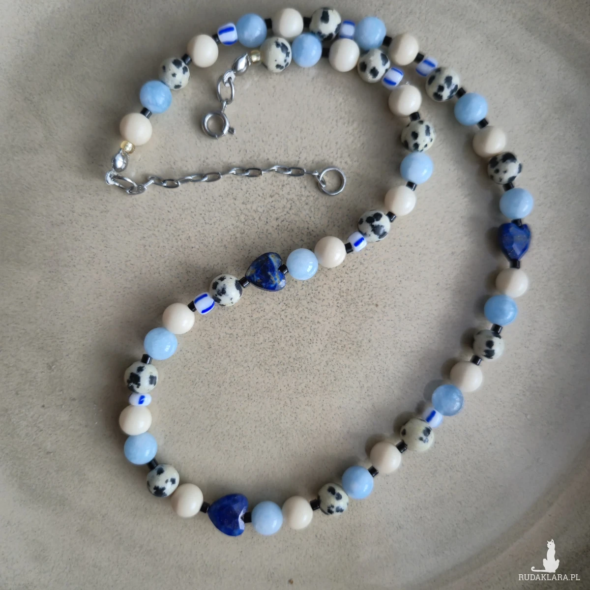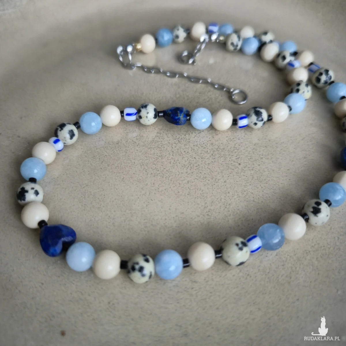 MATERIAŁ: jaspis dalmatyński, kamień rzeczny, agat, lapis lazuli, koraliki szklane, żyłka jubilerska