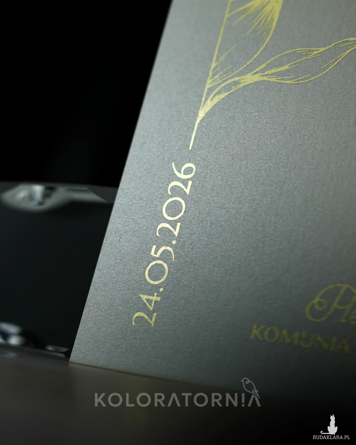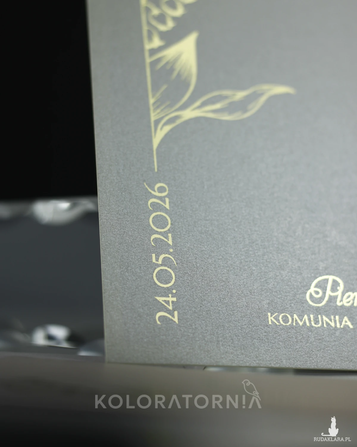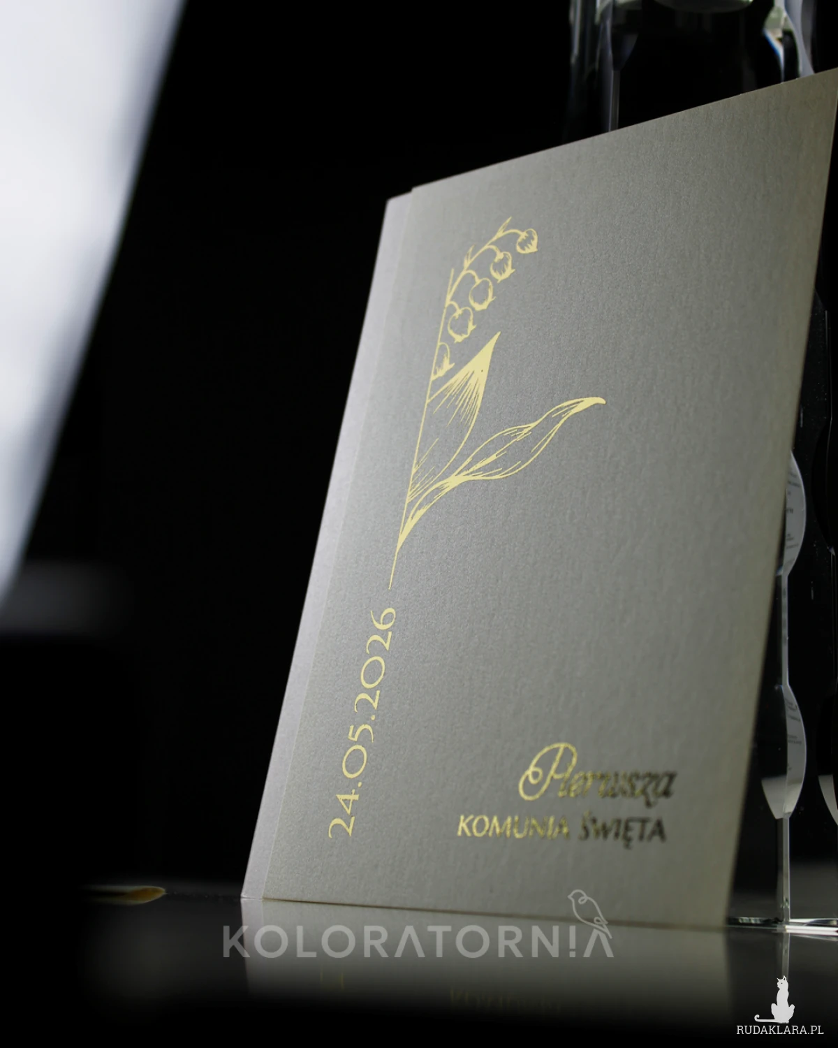 Zaproszenie na imprezę z okazji Pierwszej Komunii Świętej ze złoceniem.