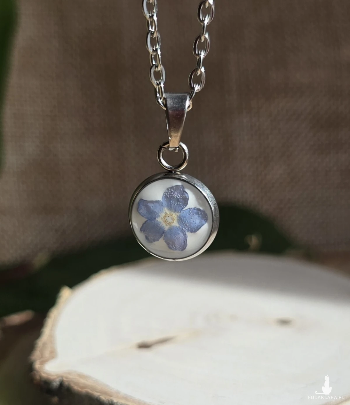 Oferuję Państwu unikalną biżuterię. Zawieszka jest wykonana z suszonych kwiatów i żywicy epoksydowej. Biżuteria jest wspaniałym i oryginalnym prezentem na lata.