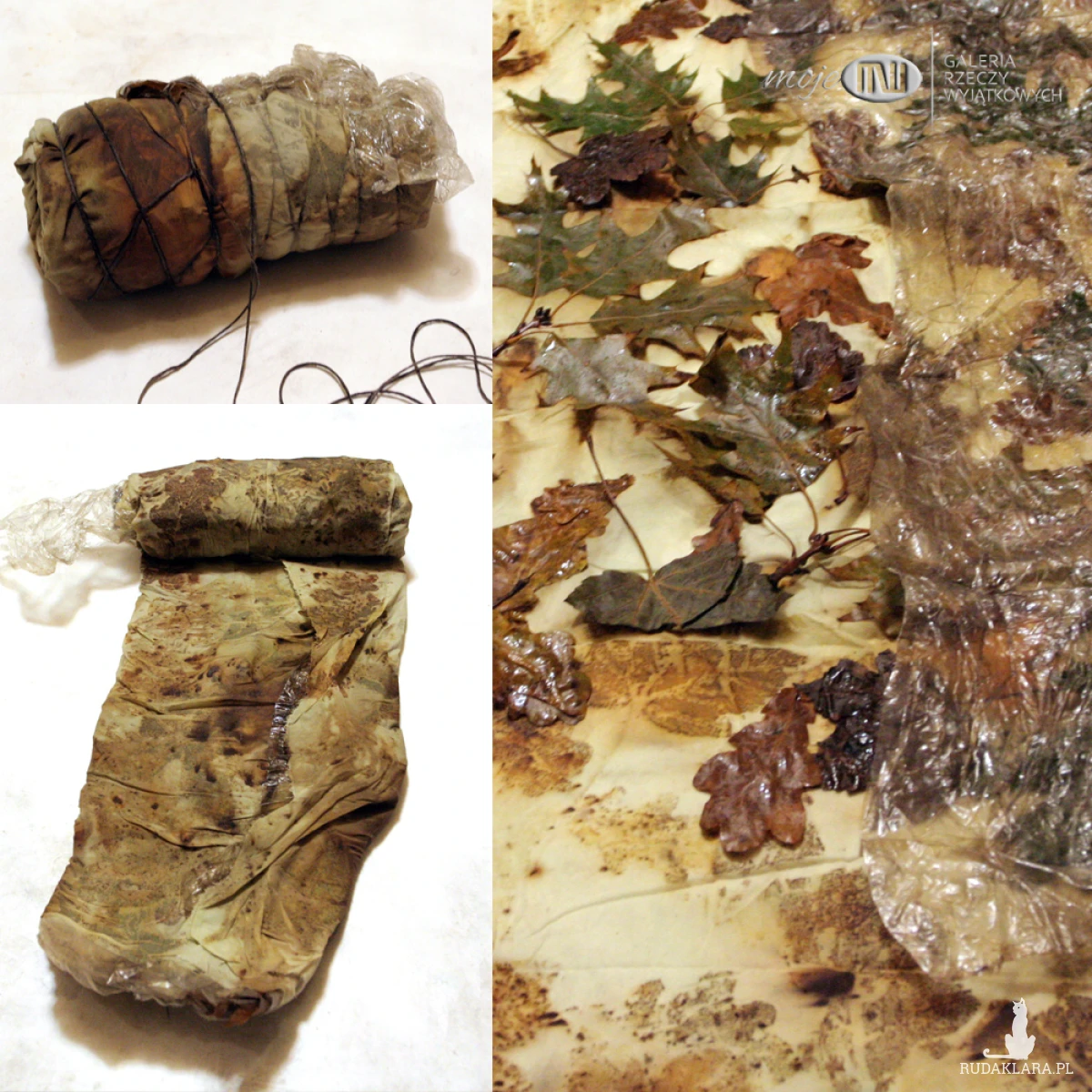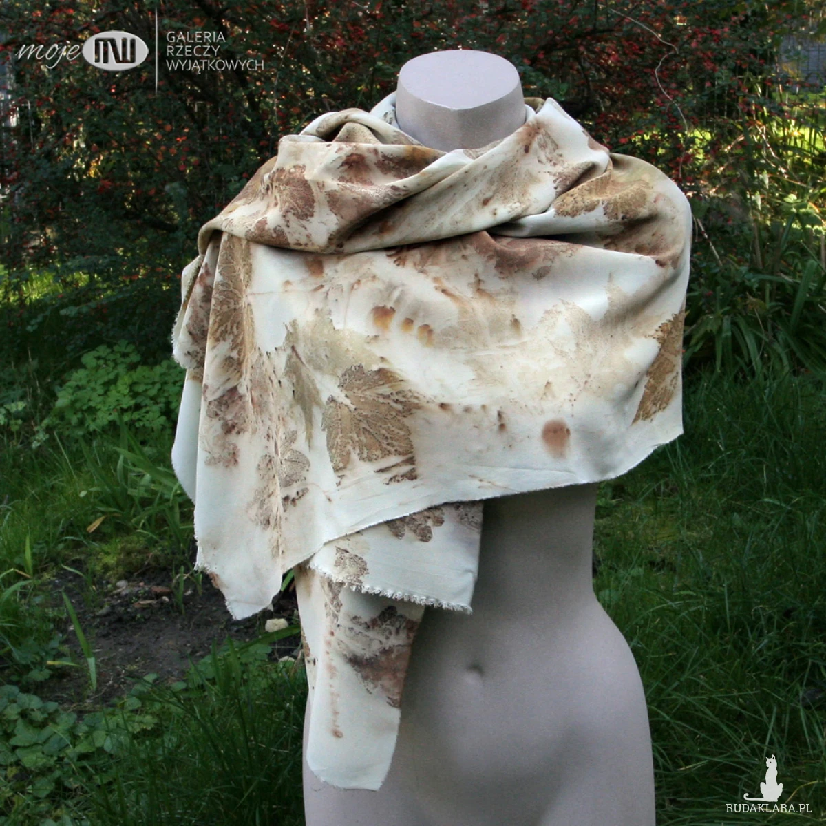 Ten szal jest z cienkiego jedwabiu barwionego m.in. liśćmi klonu oraz dębu.