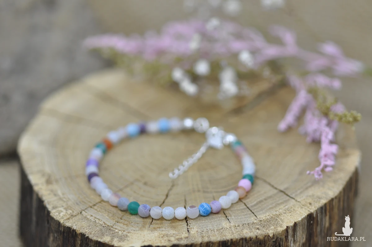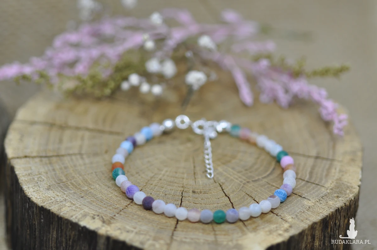 Bransoletka wykonana z kamieni naturalnych ( Agat trawiony) na żyłce nylonowej, wykończona srebrem próby 925.