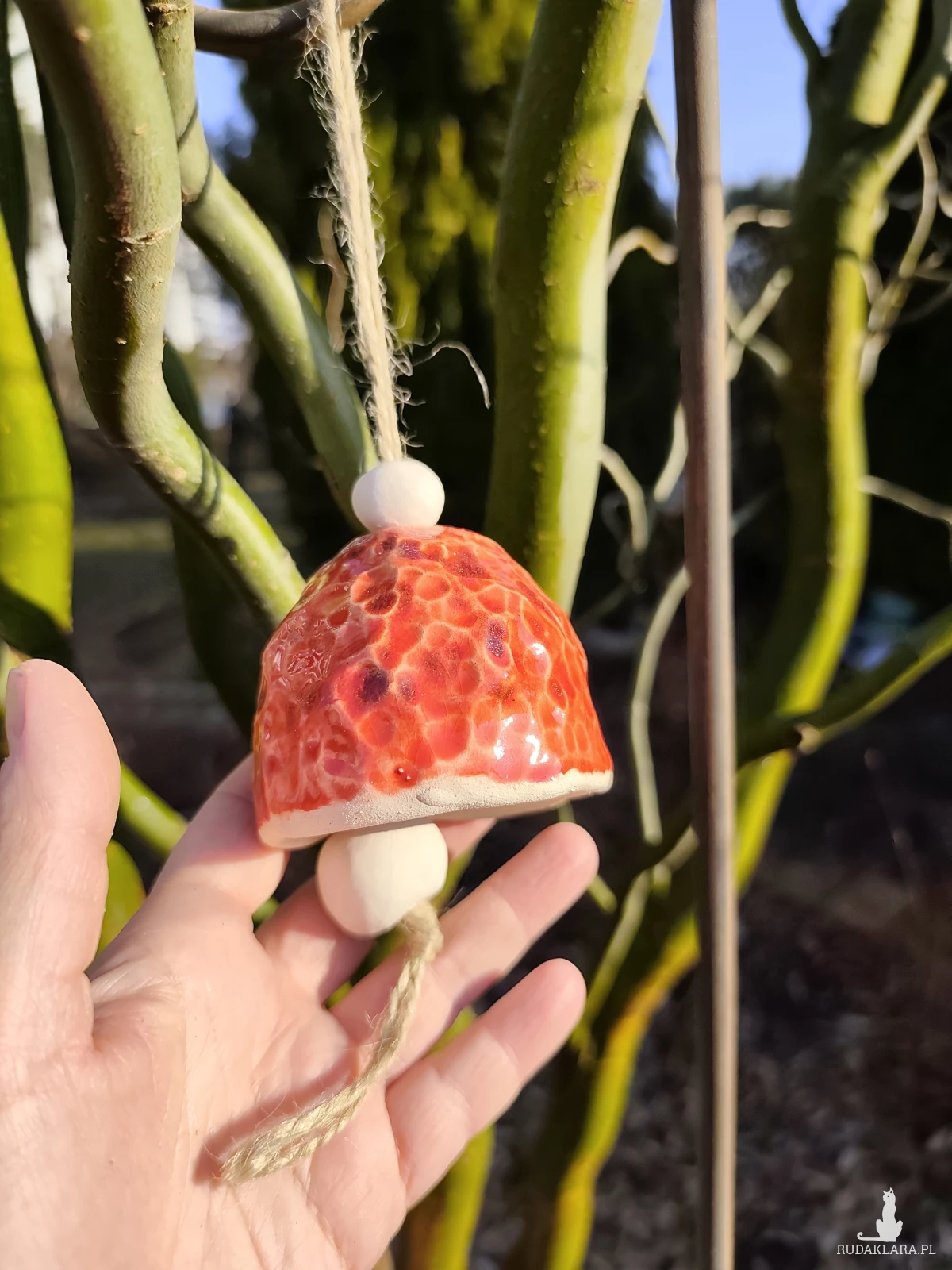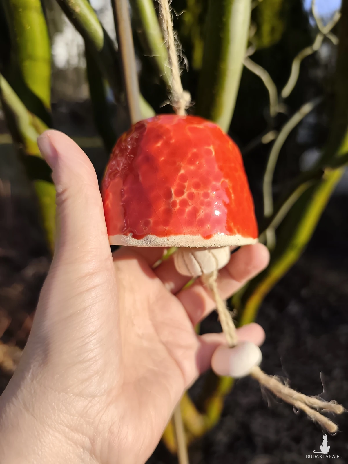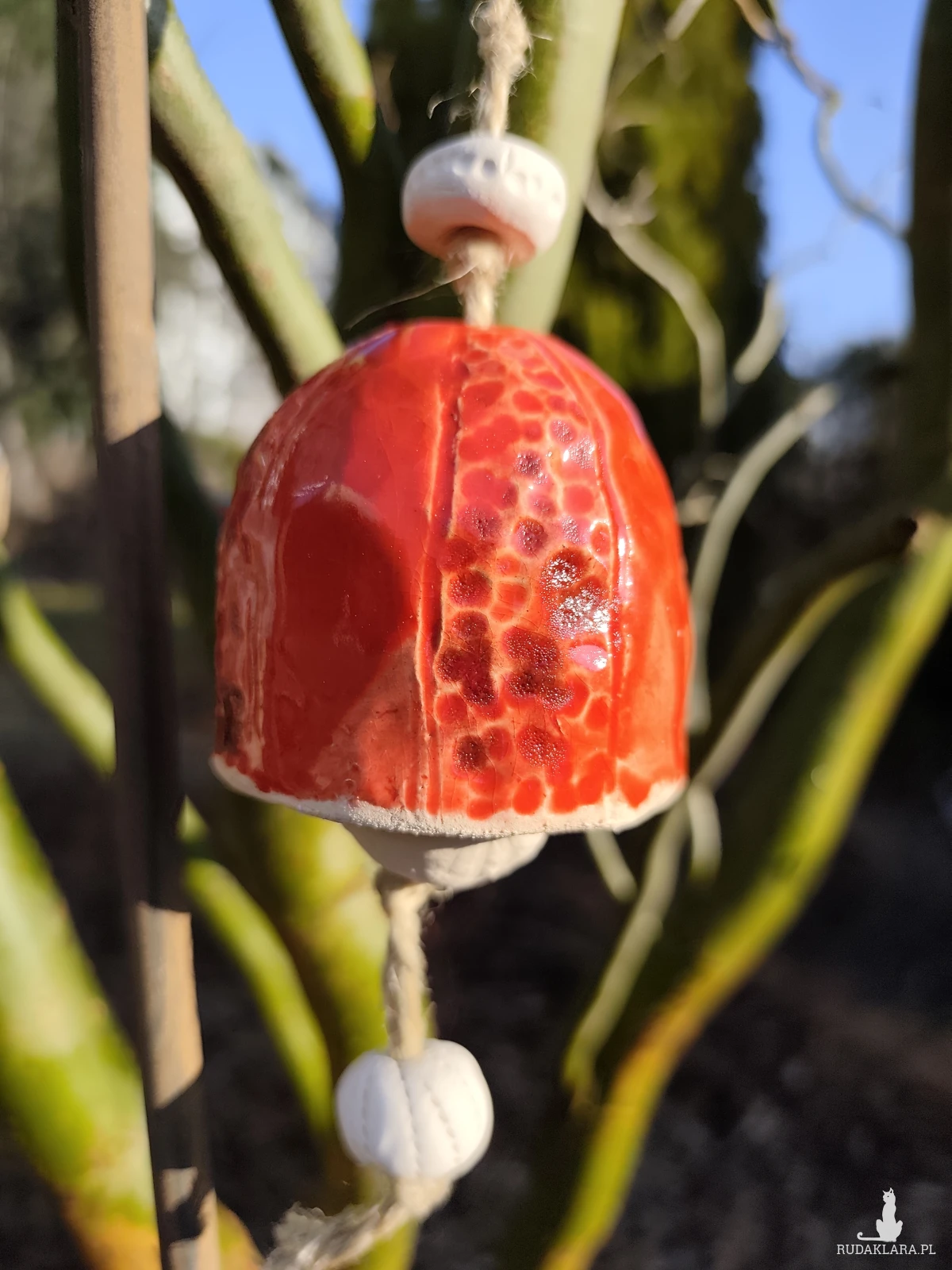 Dzwoneczek ceramiczny uroczy dodatek do Twojego ogrodu lub na balkon. Ulepiony ręcznie z jasnej gliny, szkliwiony i dwukrotnie wypalany w piecu ceramicznym na 1050 stopni.