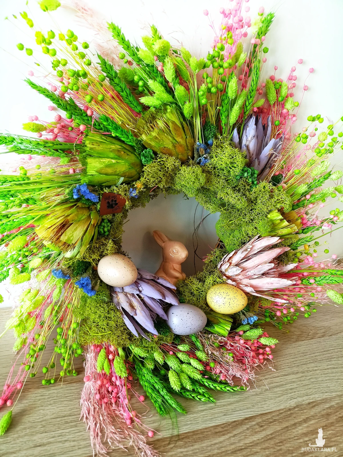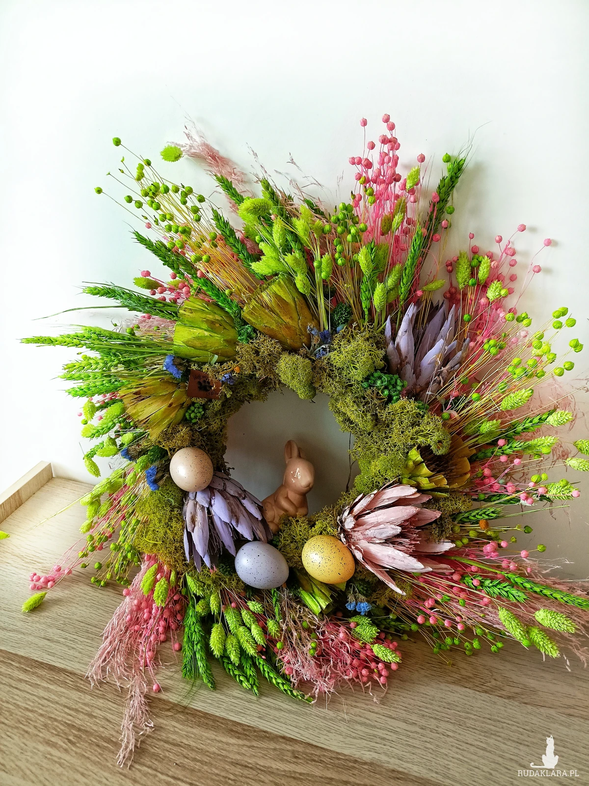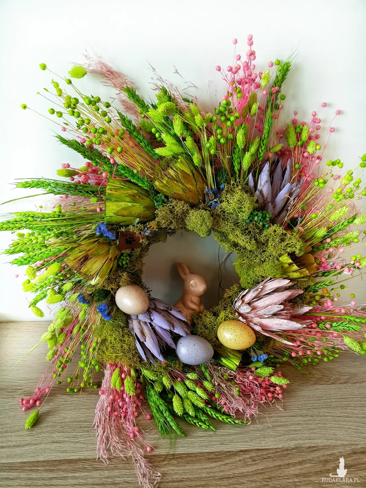 wianek wielkanocny na drzwi, wianek wielkanocny handmade, wianek wiosenny na drzwi, dekoracja wielkanocna na drzwi, wianek z suszonych kwiatów, wianek boho wielkanocny, dekoracja wielkanocna do domu, wianek z zajączkiem, wianek wiosenny boho, naturalny wianek wielkanocny