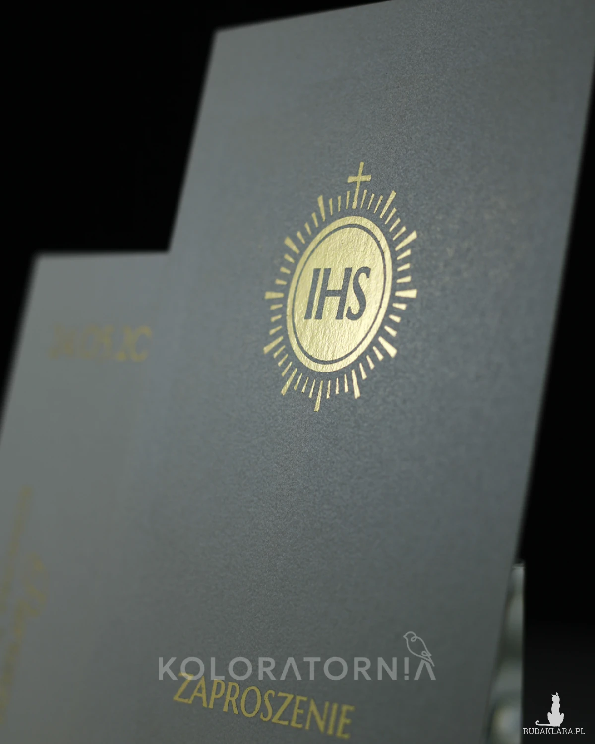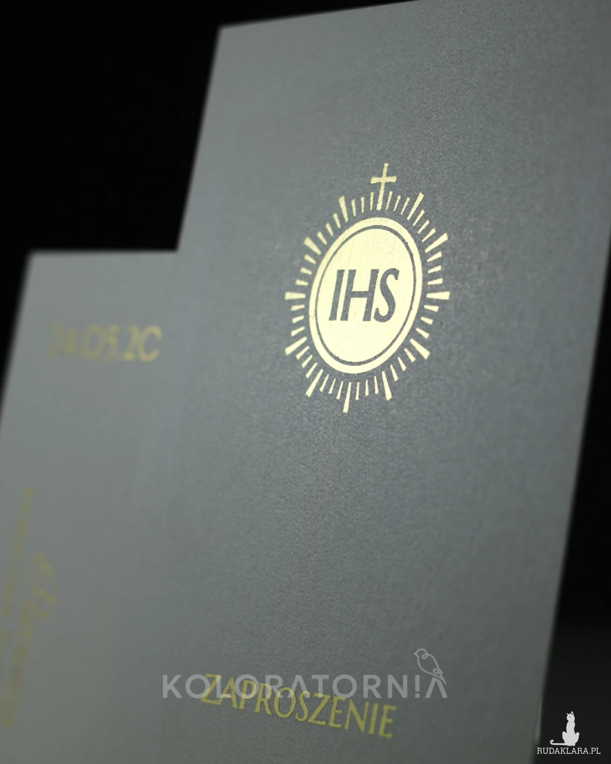 Zaproszenie na imprezę z okazji Pierwszej Komunii Świętej ze złoceniem.