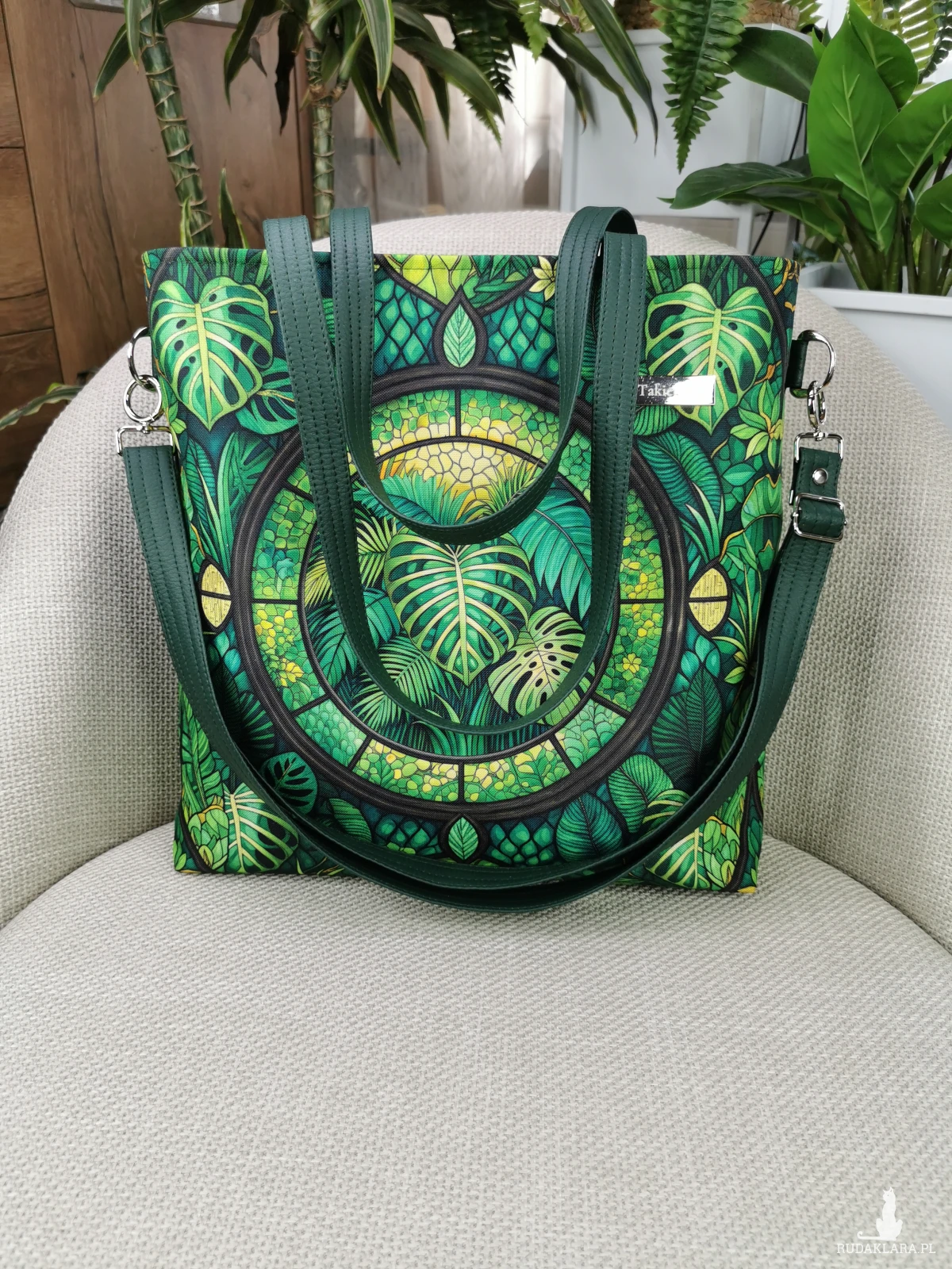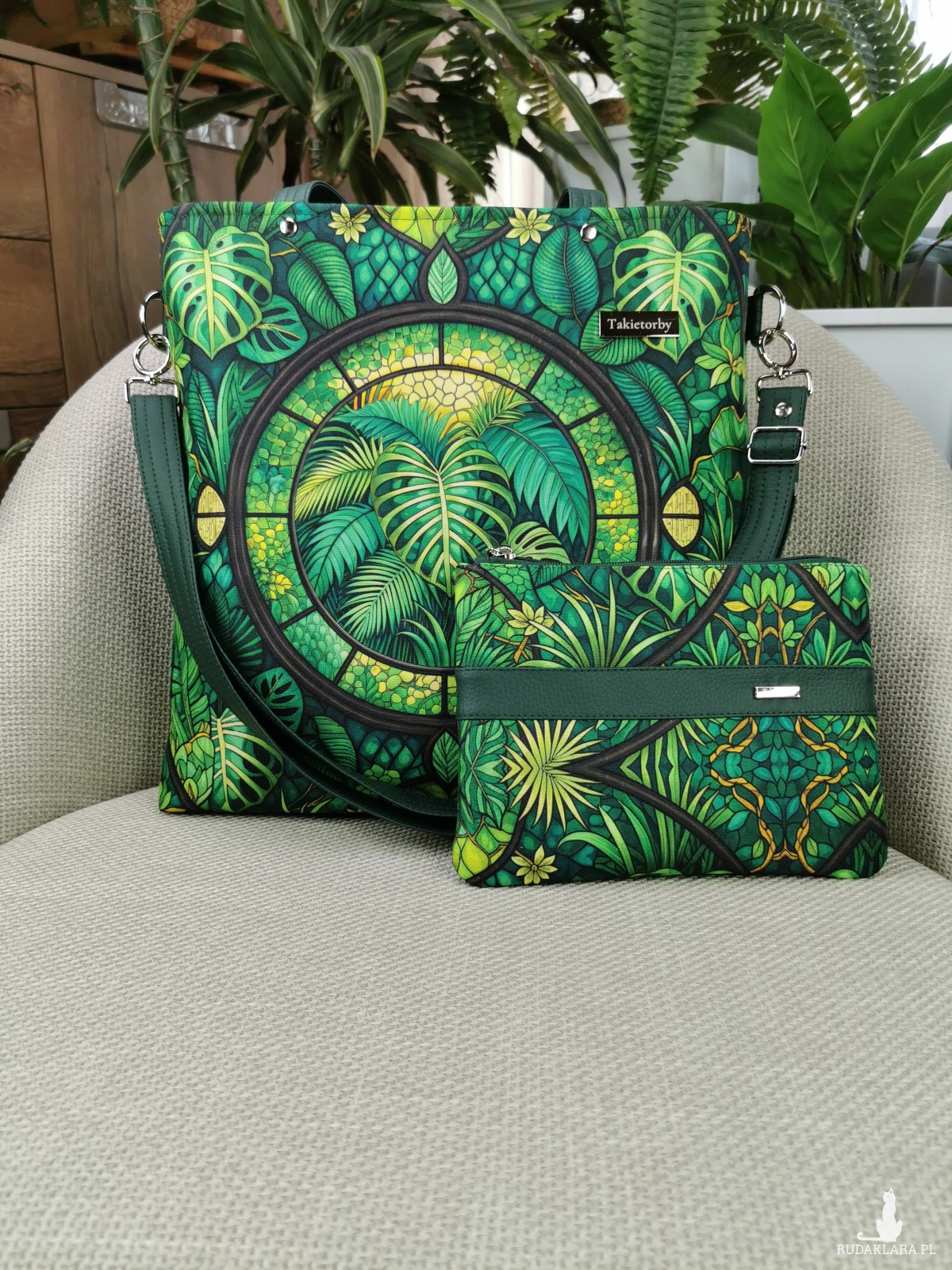 Torebka damska shopperka z kosmetyczką torebka miejska na ramę - liście monstery
