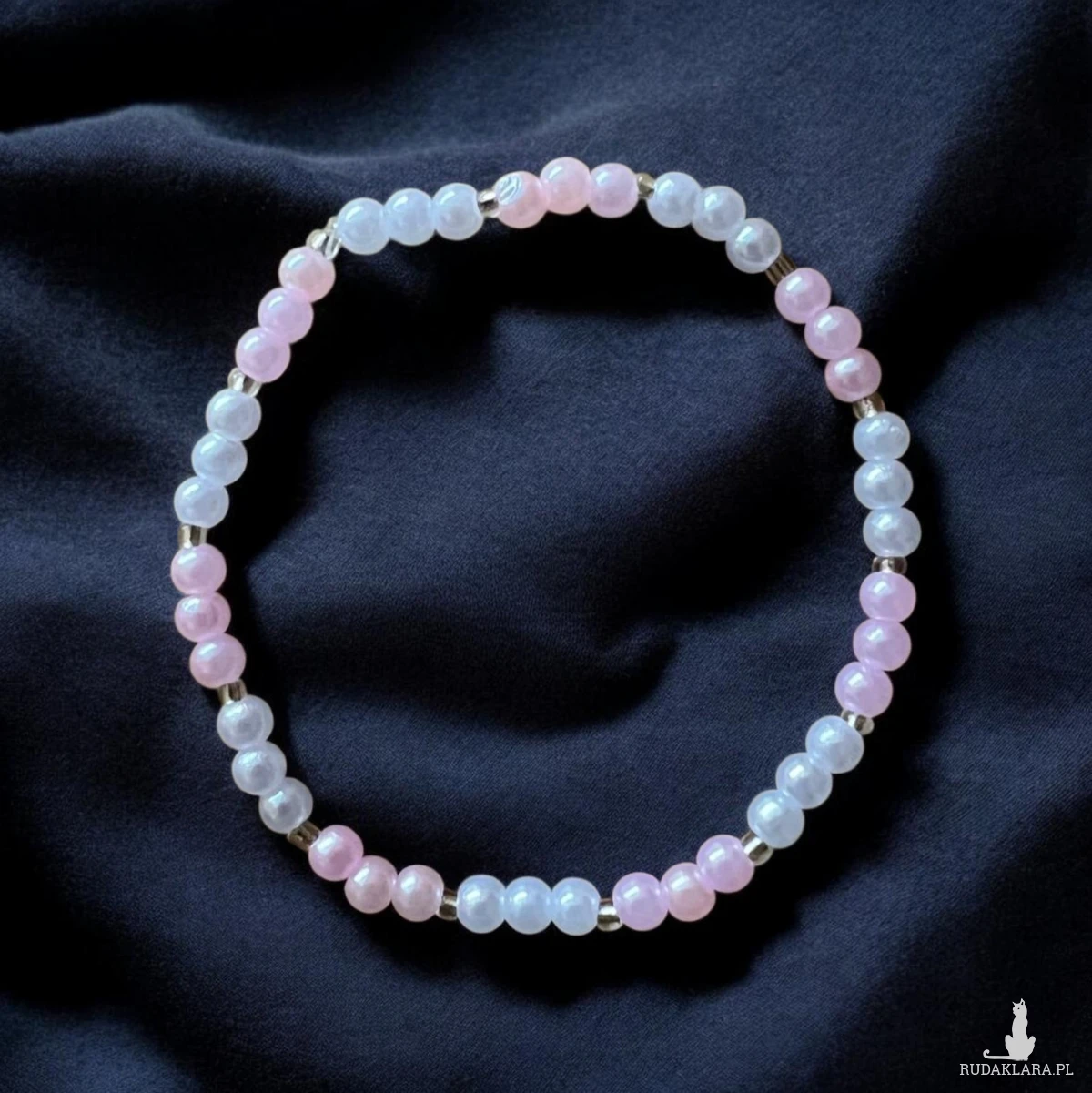 Piękna, subtelna bransoletka wykonana z perełek w odcieniach bieli i pastelowego różu. Składa się z trzech cienkich rzędów koralików o różnej wielkości, które razem tworzą bardzo elegancki i kobiecy efekt.
