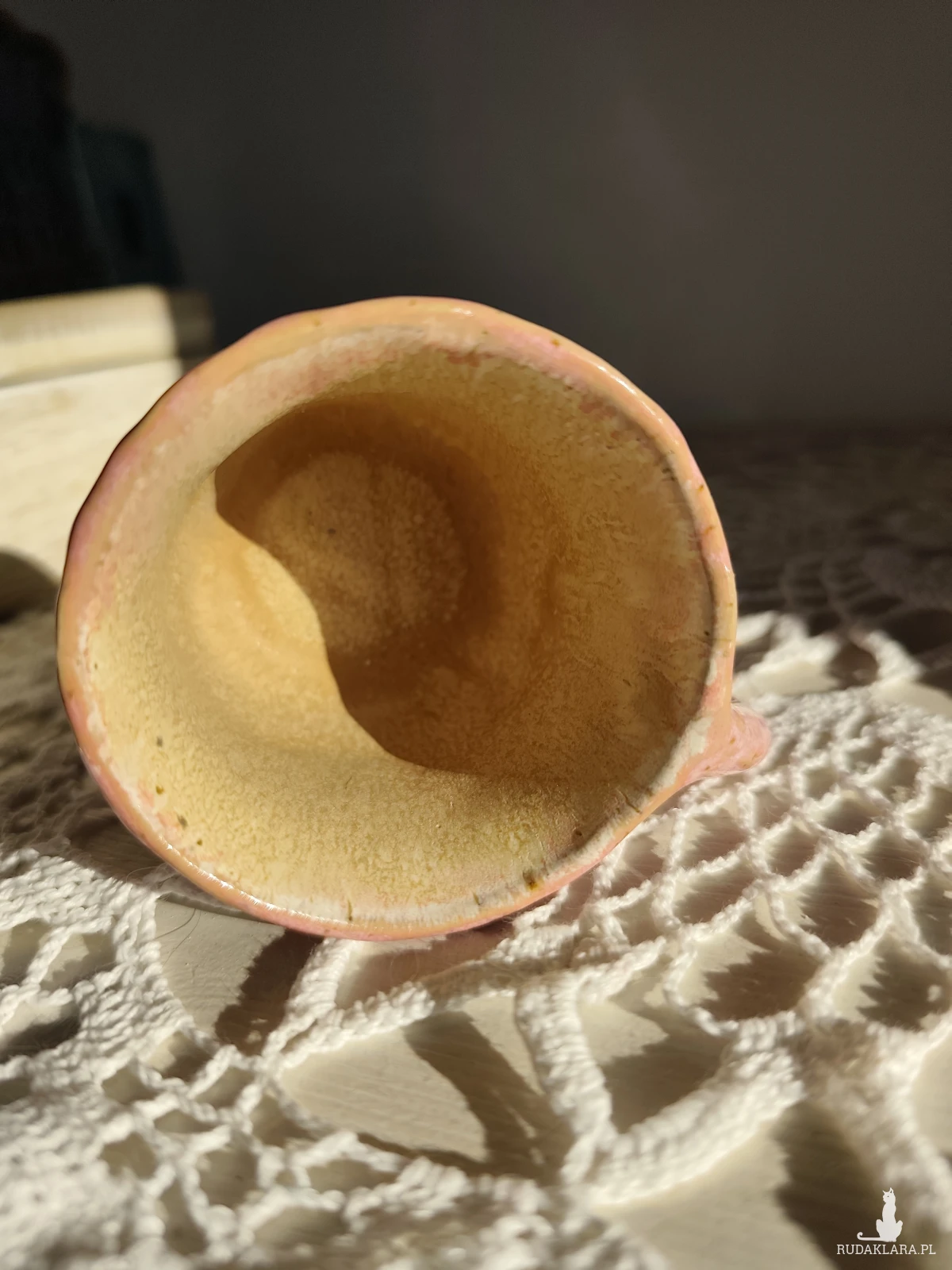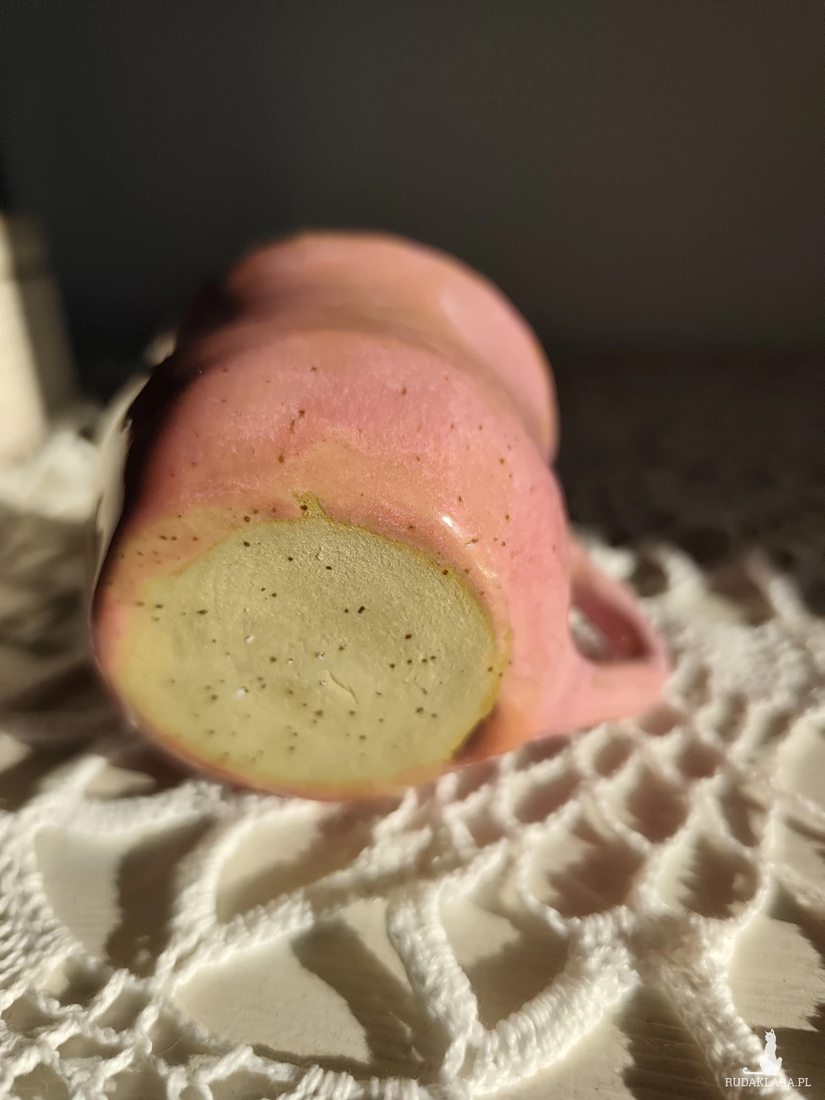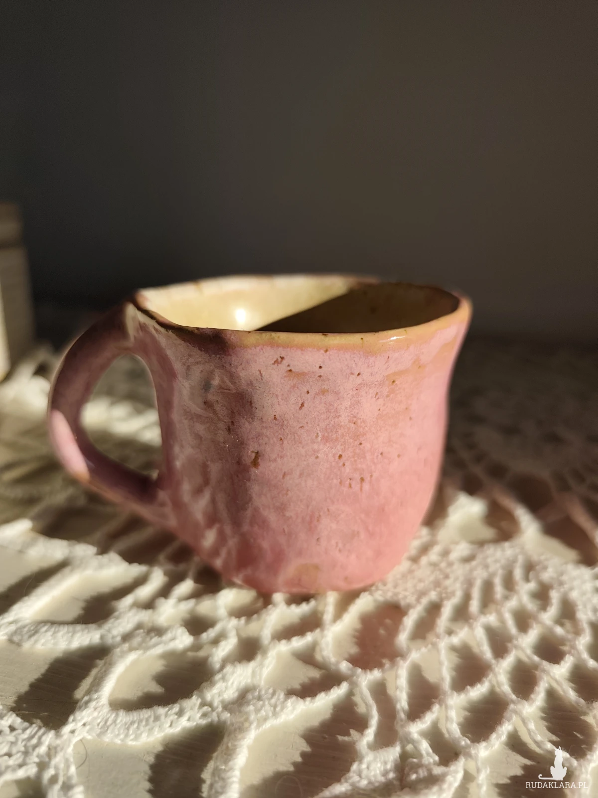 Piękny kubek ceramiczny do kawki lub herbatki, wykonany ręcznie, szkliwiony i wypalany na wysoką temperaturę. Polecam. Pojemność około 120 ml.