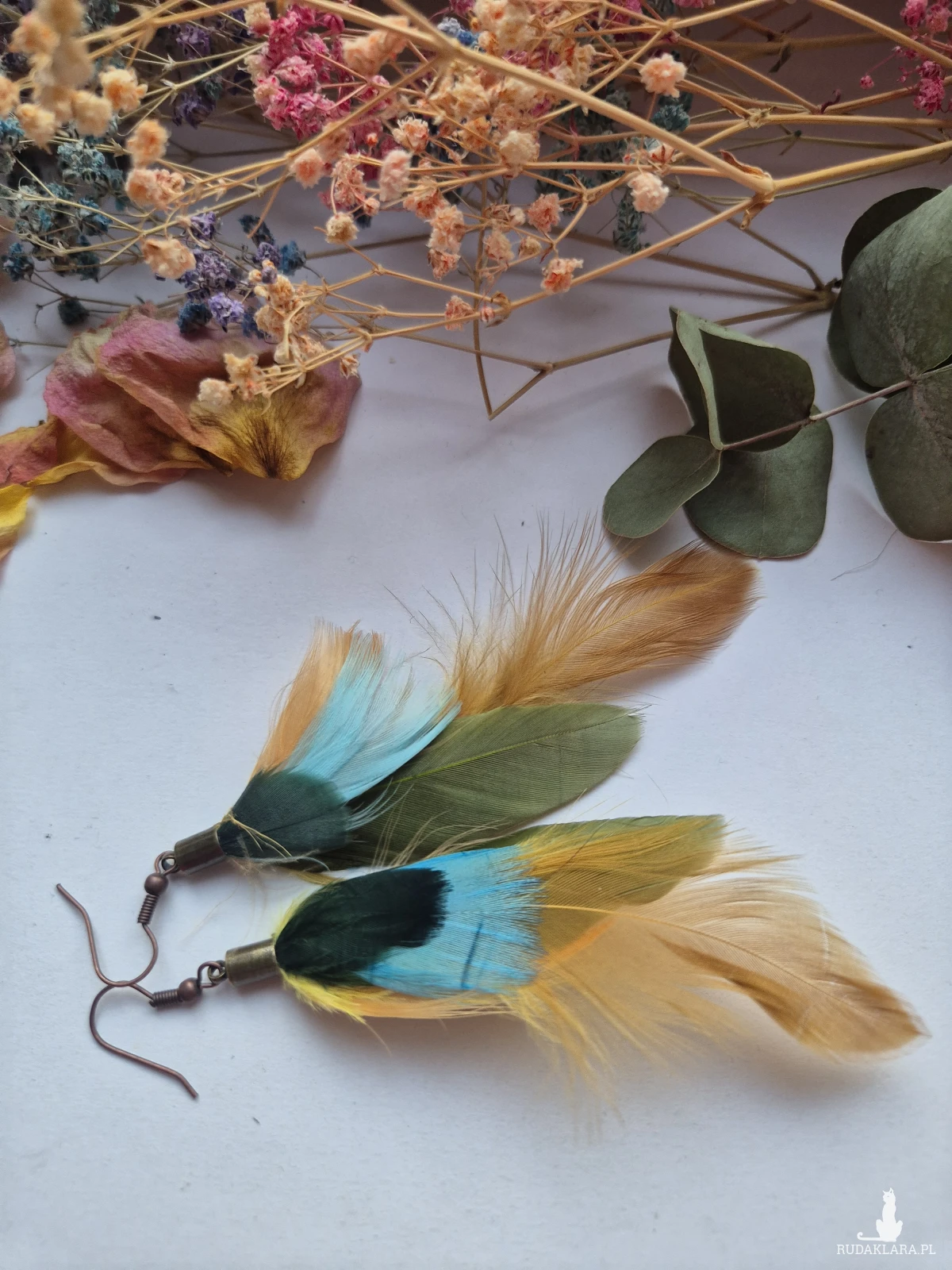 Kolczyki leciutkie zielone pióra rękodzieło polecam