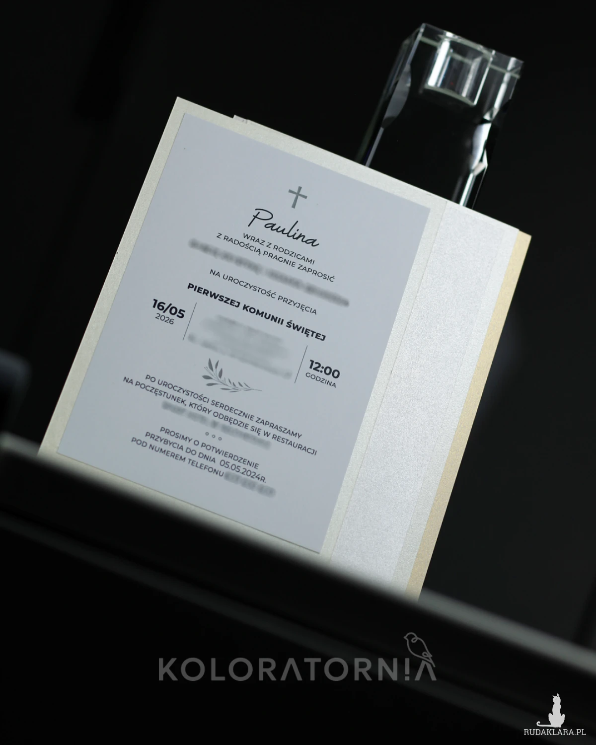 Format zaproszenia A6. Wydruk na perłowym papierze ozdobnym o gramaturze 250g.